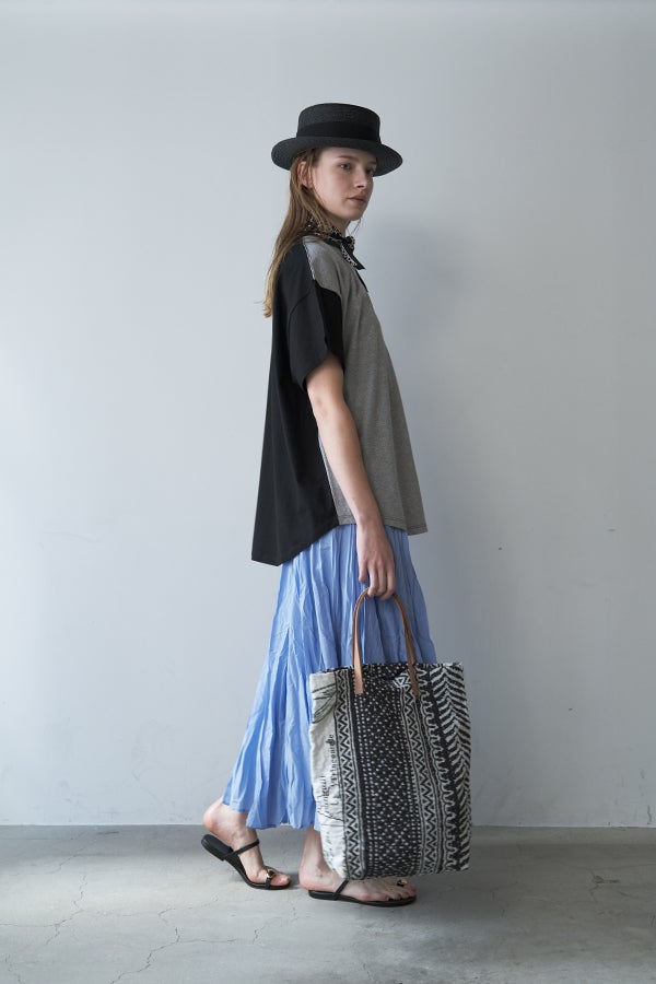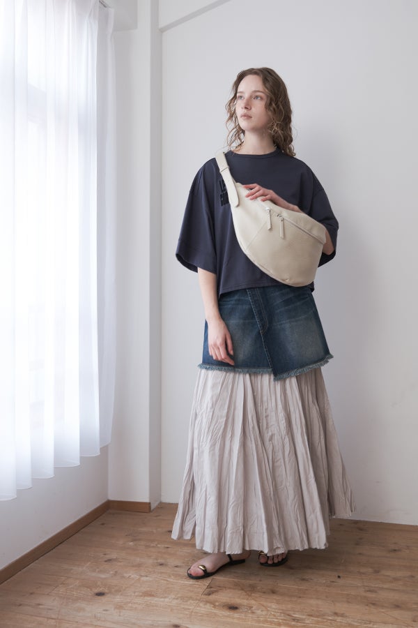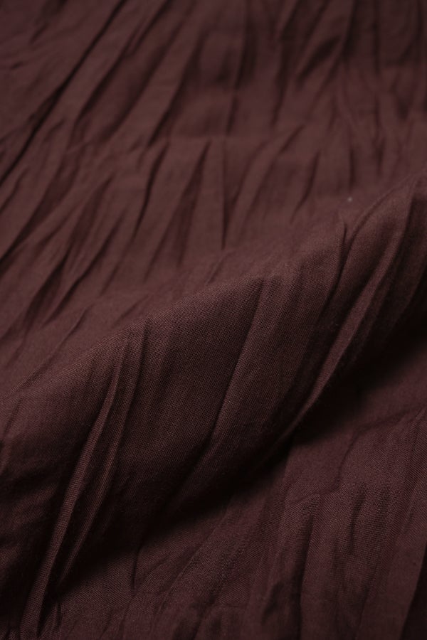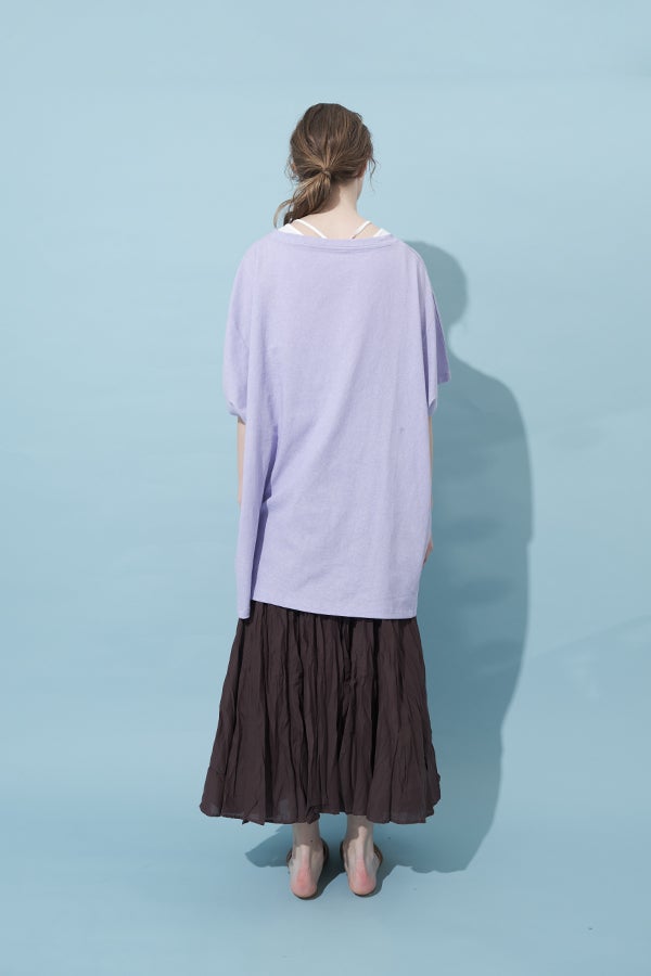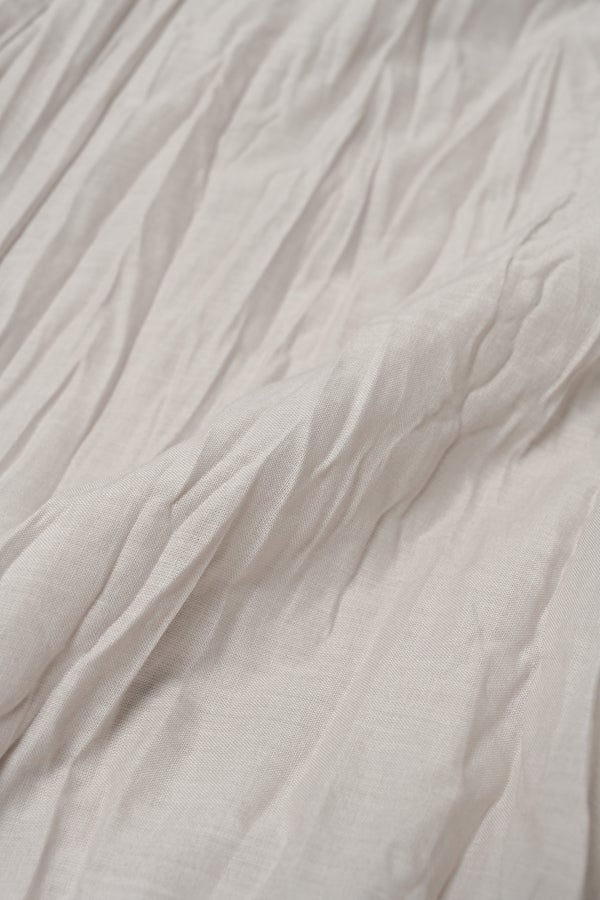 インドならではの柔らかなコットンに細かなシワを施し、空気を含むような軽い着心地に仕立てた一着。落ち感のある素材がボリュームを程よく整え、動くたびに揺れが生まれるシルエットは大人にちょうどいい存在感。