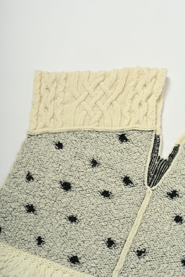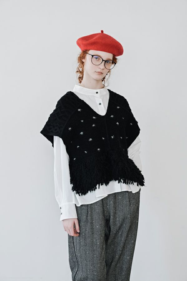 異素材の表情で魅せる、大人の立体ニットベスト。 ニットならではの異なる立体感や風合いを持つ編み地を多彩に組み合わせ、冬のスタイリングを華やかに装うベストをご用意しました。 一見シンプルなシルエットながら、肩にかけて自然に落ちるドロップラインが、ネックまわりに抜け感を与え、肩まわりに程よいゆとりを生み出すことで華奢な印象を演出します。胸元からハイウエスト位置にかけては、程よくハリ感ある編地が身体のラインから離れてきれいなドレープが出来ます。 ヘムラインにはループ編みを施し、気になるウエストラインをカバーしつつ、視覚的にウエスト位置を高く見せるデザインに。サイドスリットが動きとレイヤードのしやすさを引き立て、どこから見てもバランスの取れた美しいシルエットを叶えます。 お手持ちのシャツやTシャツに重ねるだけで、絶妙な厚みでフィット&ドレープシルエットを纏え、女性の美しい洗練スタイルを演出。一枚加えるだけで、圧倒的な存在感と魅力を引き出す、主役級のコーディネートが完成します。
