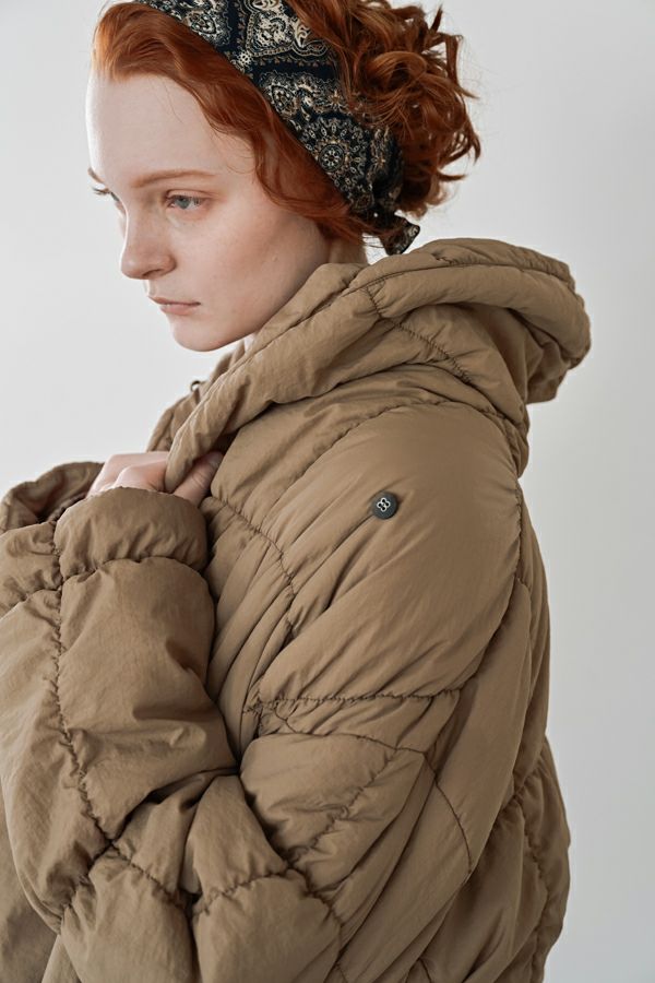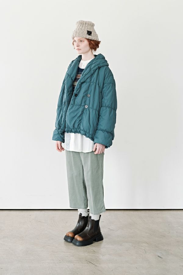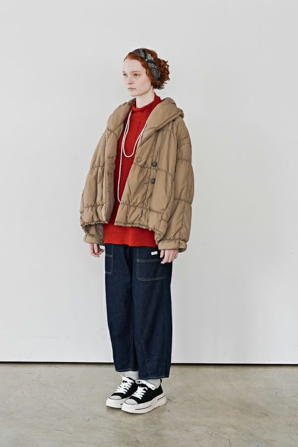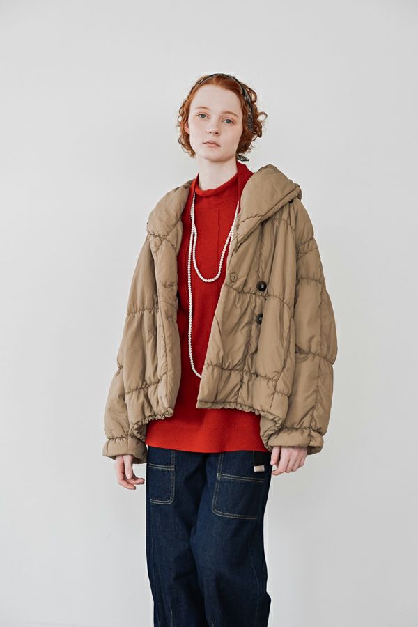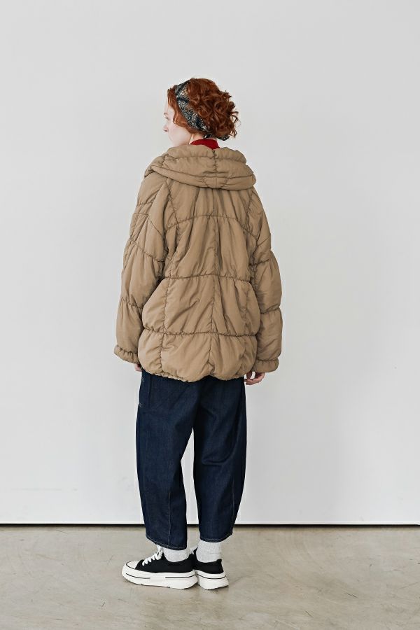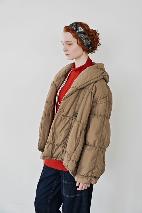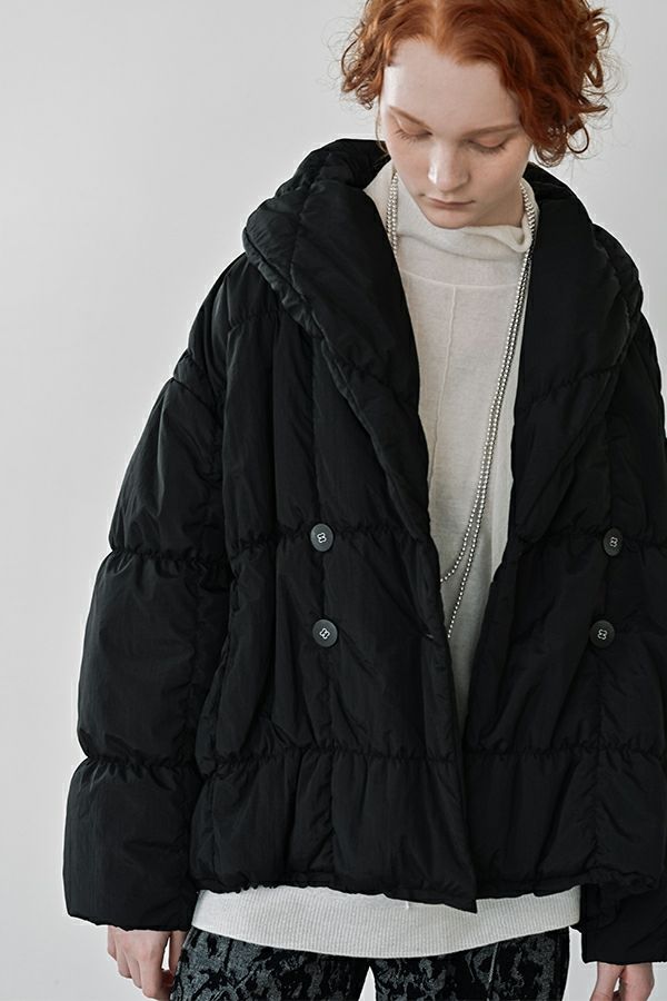 空気を纏うような軽やかさ。品よく暖かい、大人のシャーリングコート。 20デニールのナイロンを使用し、akane史上もっとも軽やかで柔らかな着心地を実現した一着。生地と中綿を一緒にギャザー加工することで生まれた独特の凹凸感が、奥行きのあるニュアンスを演出。ボリュームのあるシルエットながら、驚くほど軽く、しっかりとした防寒性も兼ね備えています。 上品なショールカラーは、首元まで閉じても開けても美しく決まり、スタイリングに合わせて印象を変えられる優秀デザイン。裾のドロスト仕様でシルエットをアレンジすれば、気分に寄り添う着こなしが完成します。 エレガンスと機能性を両立した一着は、この冬、きっと手放せなくなる存在に。 ●家庭洗濯では中綿が偏ってシルエットがきれいにならないので必ずクリーニングに出して下さい。