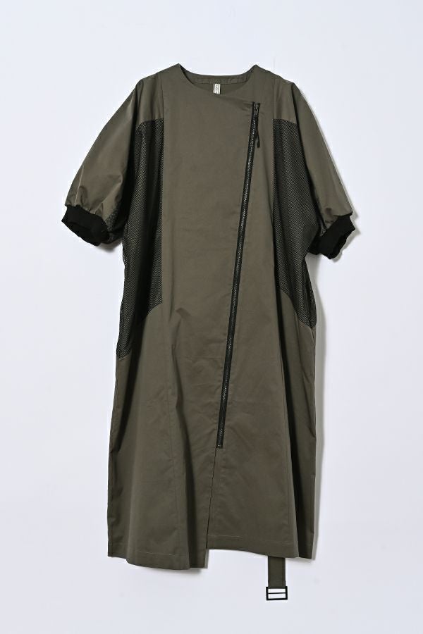 雰囲気満点、大人モードな羽織りワンピース。 一枚でサマになる、着回し力抜群のミリタリーテイスト。フロントファスナーがクールなアクセントとなり、大人のこなれた雰囲気を醸し出します。 カジュアルからきれいめまで、幅広いスタイルに合わせやすく、ワードローブにプラスするだけで、いつもの着こなしがぐっとオシャレにアップデートします。 春~秋の立ち上がりまで、3シーズン着用可能。インナー次第で様々な表情を見せてくれます。 Tシャツと合わせればカジュアルに、ブラウスと合わせればきれいめにも。レギンスやデニムと合わせればアクティブなスタイルも楽しめます。