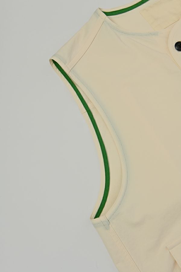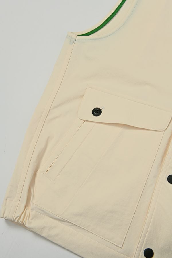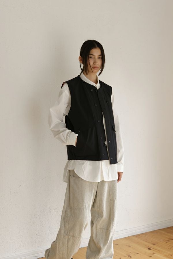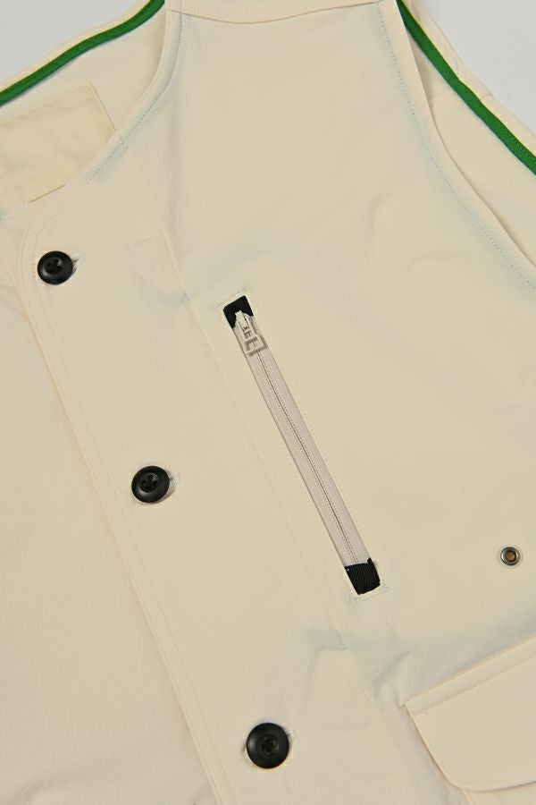 拘りが光る、ミリタリーベスト。 Violetteで人気のコーデュラ素材シリーズ。2024秋冬のコーデュラナイロンより薄手のものを使用しています。 マットな光沢感のあるコーデュラ素材はタテ・ヨコ・ナナメに伸縮性のある優れものです。アウトドアアイテムや、メンズブランドでは使用されることの多い素材でが、レディースブランドではなかなか見ない素材になっています。 胸のジップポケット、サイドの2ポケット、背面のフラップ付きポケットと全部で6ポケットあり収納力も抜群です。ポケットは多いのですが、シルエットなどを邪魔しないようなデザインになっています。 ●コーデュラとは… 伸縮性や擦りや引き裂き、擦り切れにとても強く撥水性もある優れた素材です。普通のナイロンよりも7倍の強度があると言われている素材は、アメリカのインビスタ社が認めた厳しい条件をクリアできた工場でしか作成できない特別な素材です。 ●同素材のコデュラワークパンツ(25155-9125Y)とセットアップ可