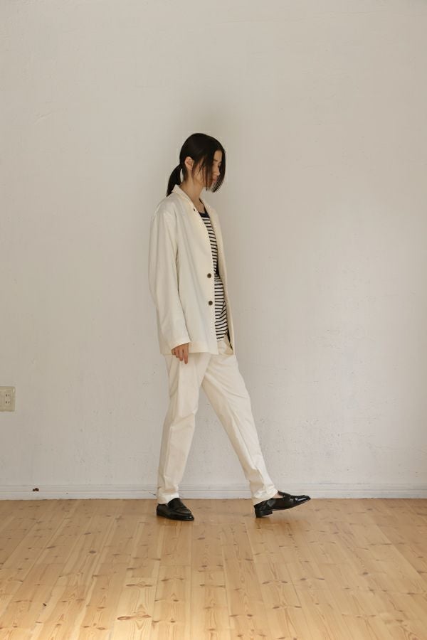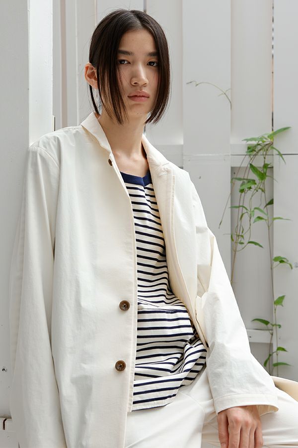 拘りが光る、シンプルなワークジャケット。 Violetteで人気のコーデュラ素材シリーズ。ブランド「Violette」の考えるオケージョンアイテムの1つです。 スッキリとしたジャケットですが、テーラードジャケットよりもカジュアルな雰囲気になるように仕上げています。フロントボタンを一番上まで閉めると、また違った表情でメンズライクな印象になります。 2024秋冬のコーデュラナイロンより薄手のものを使用しています。マットな光沢感のあるコーデュラ素材はタテ・ヨコ・ナナメに伸縮性のある優れものです。アウトドアアイテムや、メンズブランドでは使用されることの多い素材でが、レディースブランドではなかなか見ない素材になっています。 ●コーデュラとは… 伸縮性や擦りや引き裂き、擦り切れにとても強く撥水性もある優れた素材です。普通のナイロンよりも7倍の強度があると言われている素材は、アメリカのインビスタ社が認めた厳しい条件をクリアできた工場でしか作成できない特別な素材です。 ●同素材のコデュラワークパンツ(25155-9125Y)とセットアップ可