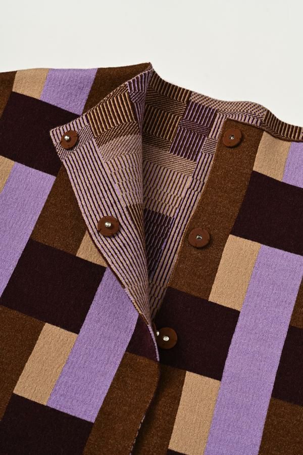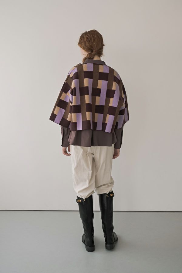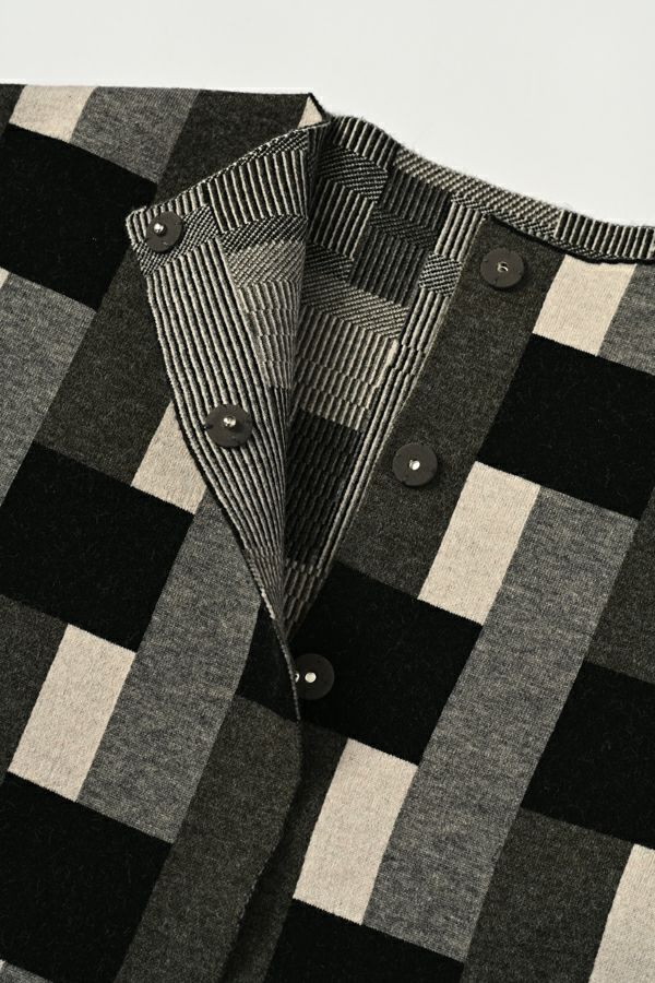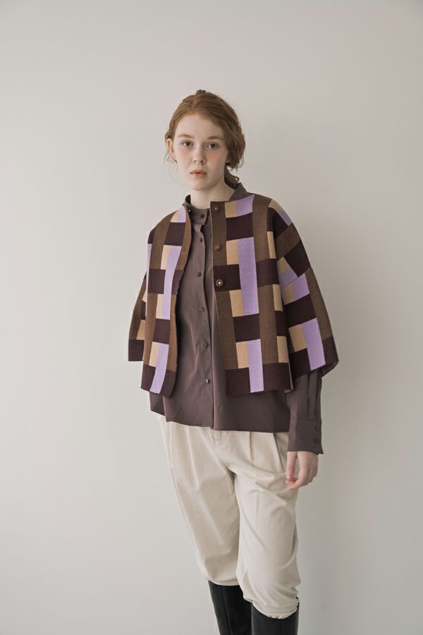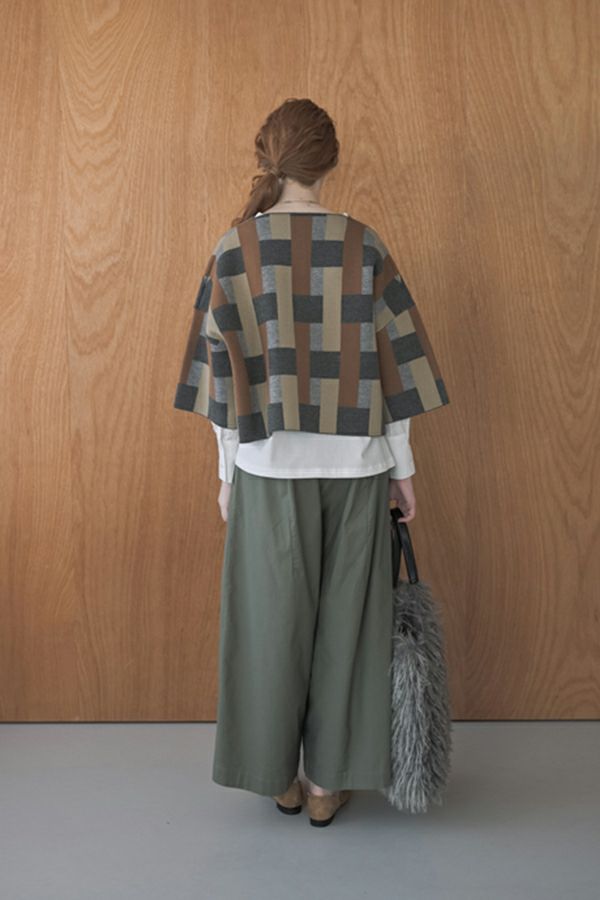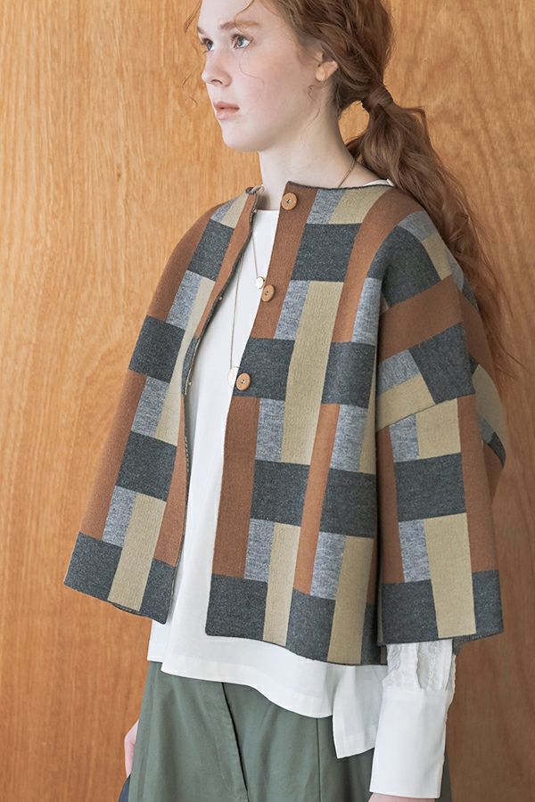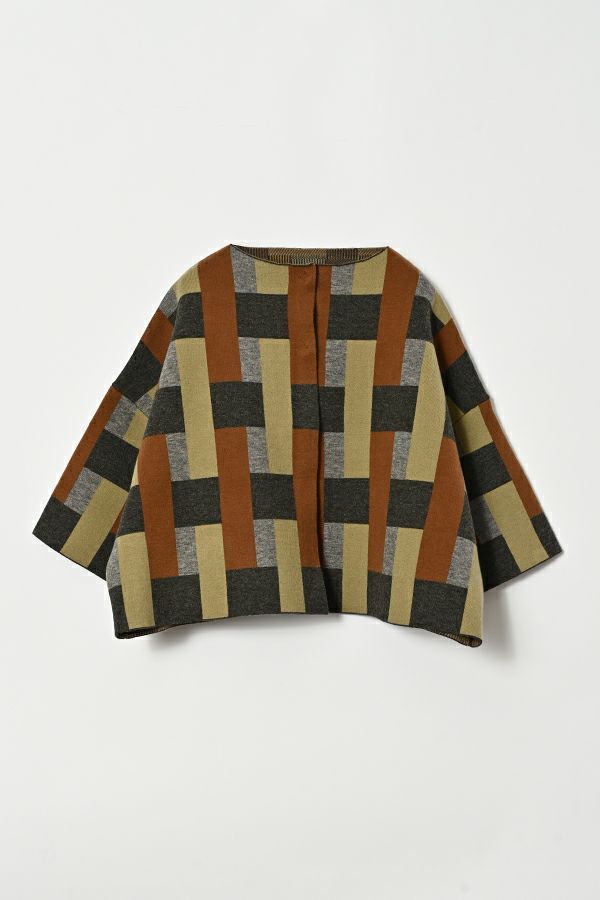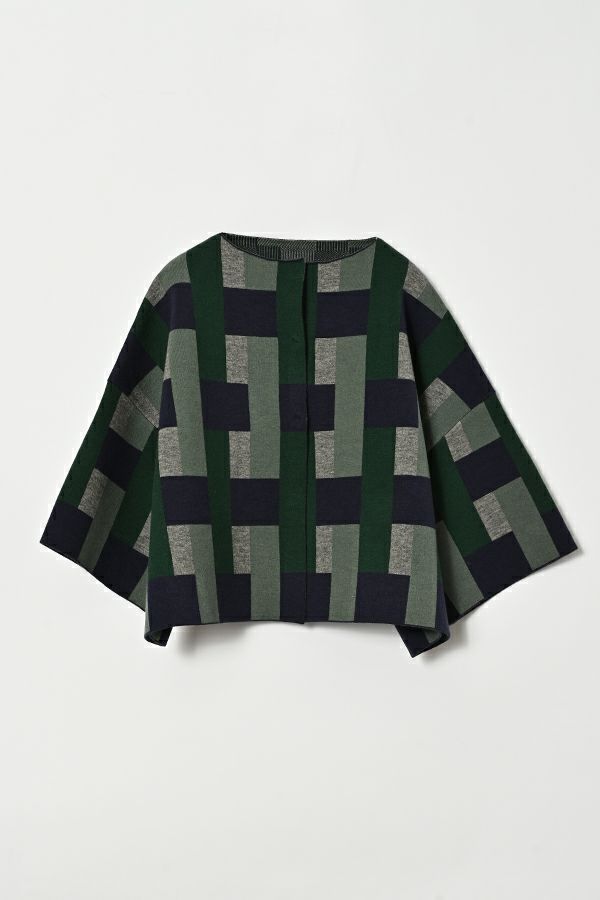 秋冬コーデの主役になる、上品×大胆なバスケットチェックカーディガン。 落ち着いたトーンの配色に目を惹く大胆なバスケットチェック柄が効いたアイテムです。 ネックラインは あえてシンプルな仕様でシャープなデザインに施し上品な印象に。身頃と袖をオーバーサイズにして柔らかなハリ感のドレープとバランスの取りやすいショート丈でオンスタイルにもジャケット感覚で合わせていただけます。 ややオーバーサイズの袖が華奢見え効果がありつつ、短丈の身丈がウエストポジションを高くしてくれるので ボリュームのあるボトムスやマーメイド、ストレートラインシルエットの女性らしいスカートと相性抜群です。