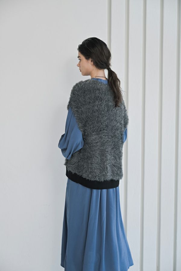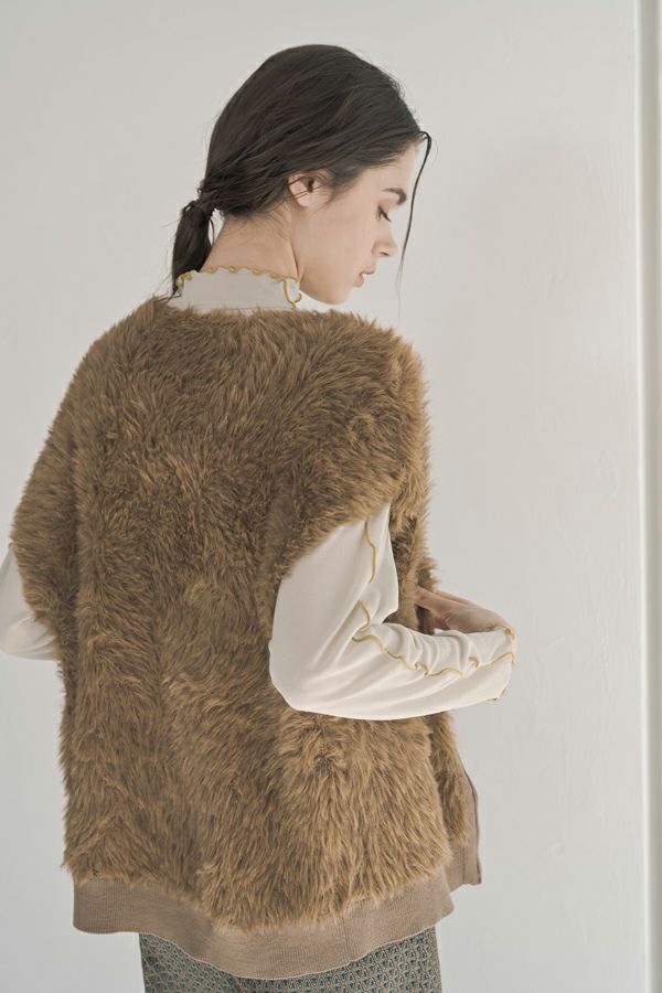 ふわふわミックスカラーが魅せる、こなれ感たっぷりのニットベスト。 ミックスカラーのふわふわとした毛足が目を惹く、華やかな印象のアイテム。 適度にドロップしたショルダーと、後ろ裾がラウンドして下がるデザインが、女性らしいこなれ感を演出します。スッキリとしたネックラインにシンプルなファスナー仕立てを施し、前を開いたままの着用でサマになる一着です。 気温差の激しい季節の変わり目にカジュアルなロンTEEやシアートップスの上に重ねるだけで、おしゃれ度がグッと上がり、大人の抜け感をお楽しみいただけます。ワンピースの上にレイヤードすれば、レディーライクなコーデが完成します。