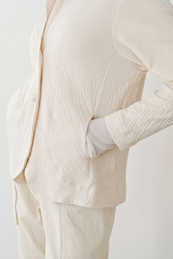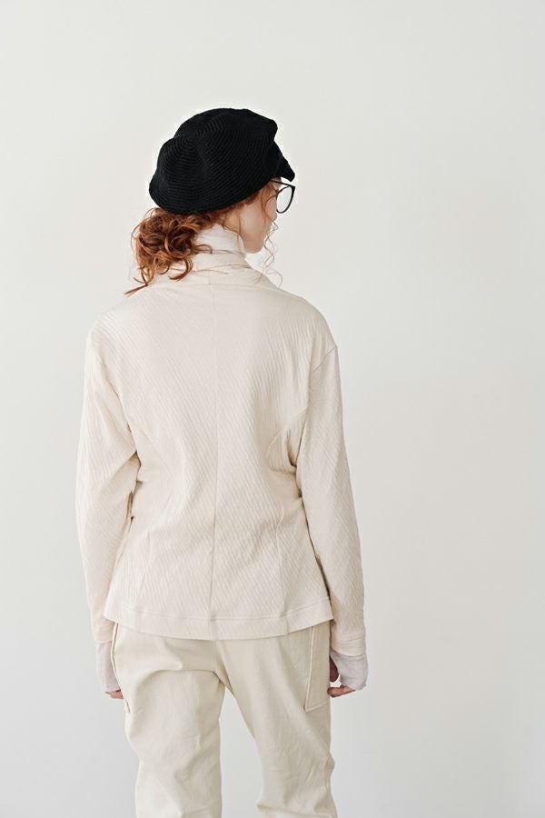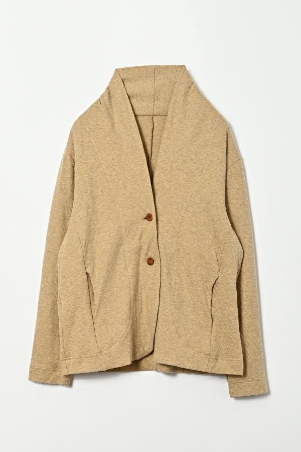 肌にやさしく、心までほどける。大人のための上質ガーゼカーディガン。 BINKAN-SANシリーズの冬バージョンが登場です。柔らかな2枚の天竺を接結編みでつなぎ合わせ、自然な立体感とくしゅっとした表情が浮かび上がる、大人のための一枚。 空気を含んだガーゼ素材は、驚くほど軽やかでふんわりとした肌あたり。それでいてしっかりとした温かみを感じられ、秋冬の頼れる存在に。ボリューム感がありながらも落ち感のあるシルエットが、着る人の動きにやさしく寄り添い、すっきりとした印象に導きます。 首元は小さめのショールカラーとV開きで、顔まわりをすっきりと見せてくれるのもポイント。綿100%の素材は、シーズンレスで長く着られます。敏感肌の方にもやさしく、ウールが苦手な方でも快適に着用いただけます。 ニットの代わりになる柔らかさで、チクチク感とは無縁の心地よさ。羽織り、コートインなどデイリーにはもちろん、リラックスした旅先にも、キレイめなシーンにもフィットする、汎用性の高い大人の一着です。 ●日本製 ●ORCOTT(オーコット)札付き エーゲ海に面したトルコ・イズミール地方の農地で、農薬・肥料の厳格な使用基準を守って栽培された良質なオーガニックコットンを使用した、環境にやさしいサステイナブルテキスタイルです。 ●素材の特性上引っ掛かりが出やすくなっています。手洗いの際は軽く押し洗いで、もみ洗い・擦り洗いはお避けください。