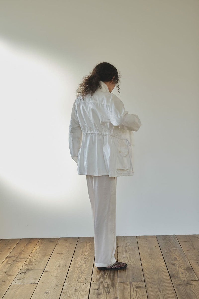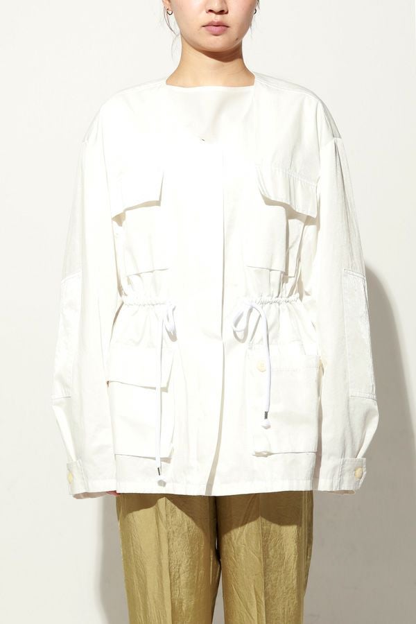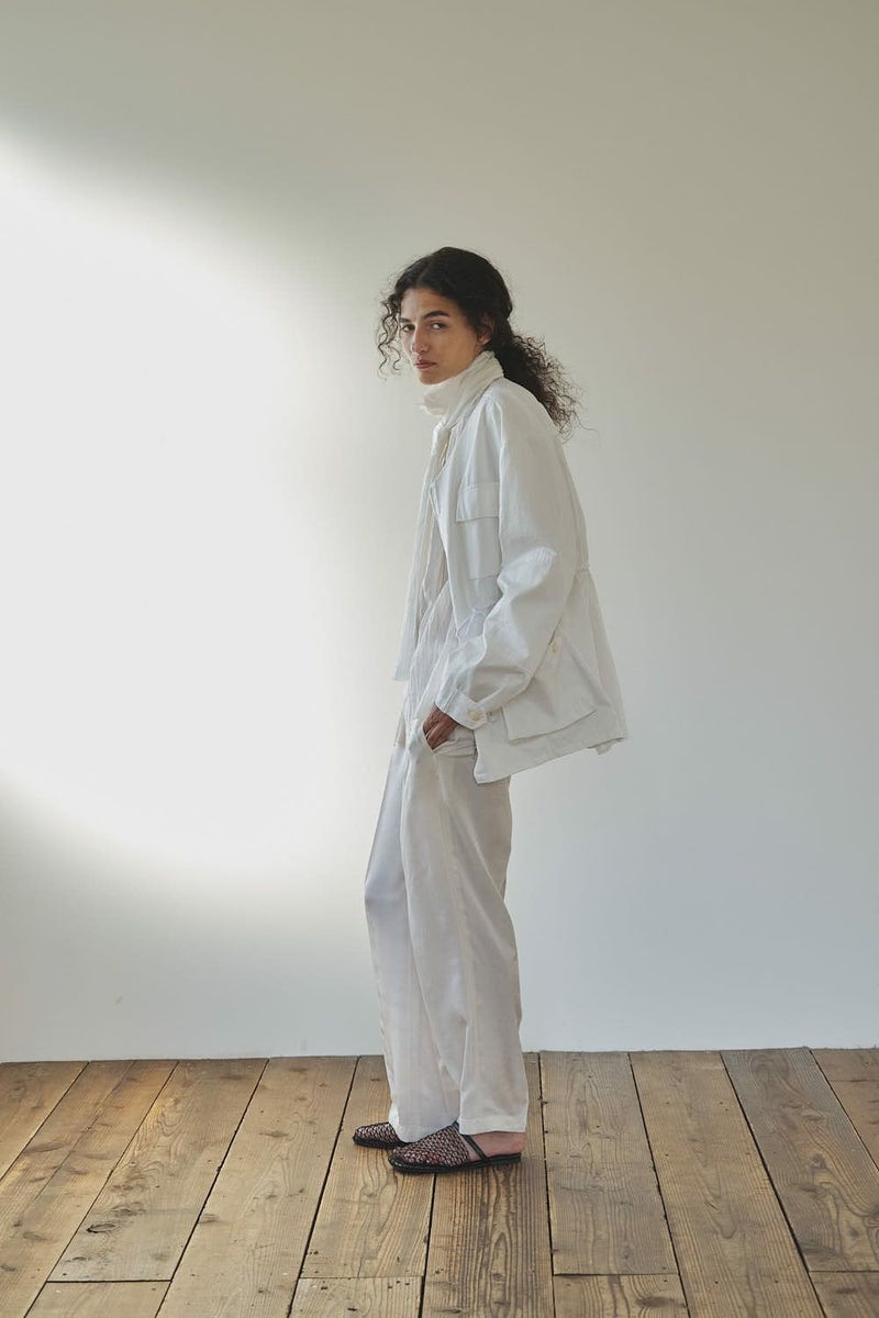 羽織るだけで旬顔、大人のこなれ感を叶える4ポケットブルゾン。 トレンド感のあるワークディテールを取り入れた4ポケットブルゾンは、程よいボリューム感と立体的なシルエットが魅力。 羽織るだけでこなれた印象を演出し、軽やかな素材感で季節を問わず活躍します。 インナーを変えるだけで、カジュアルからフェミニン、オフィススタイルまで自在に対応できる万能さもポイント。 デニムと合わせれば抜け感のあるカジュアルに、プリーツスカートと合わせれば甘さを抑えたミックススタイルに。 シャツを重ねればきれいめなオフィス仕様へと変化し、旬のワイドパンツとも好相性。シーンに合わせて印象を自在にアレンジできる、大人のワードローブに欠かせない一枚です。