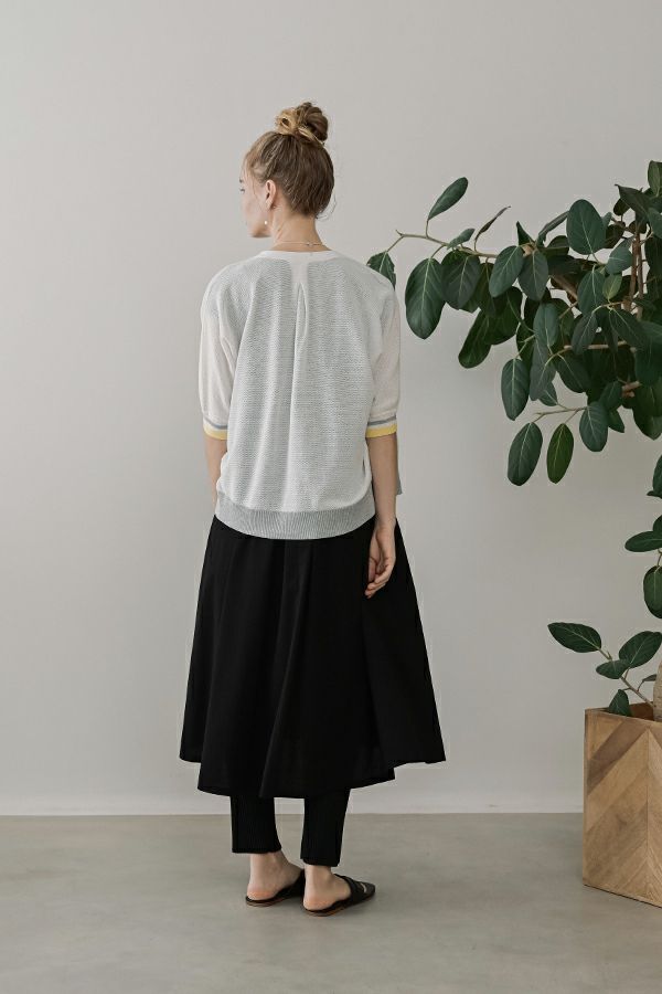 お待たせしました!発売からご好評いただいている半袖ワンピース!待望の再入荷です。新色グリーンが加わり、全4色に! 薄手のシルケット加工のカットソー素材は光沢感あり発色性も良く落ち感もあるので分量感たっぷりでも軽くて楽チン。 体を締め付けず着心地満点のきれいめワンピース。 ドロップショルダーと広めの袖で肩回りをカバーし、前のタテ切替えが全体をスッキリ見せ 脇線が無いのでフレアーラインがきれいにでるシルエットです。 襟元は薄いオーガンジーを使い華奢な印象で顔周りを華やかに見せます。レギンスやソックス+スニーカーやニットボレロと相性GOOD! 追加ブラウン/新色グリーン 4月下旬入荷予定