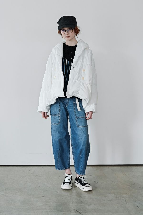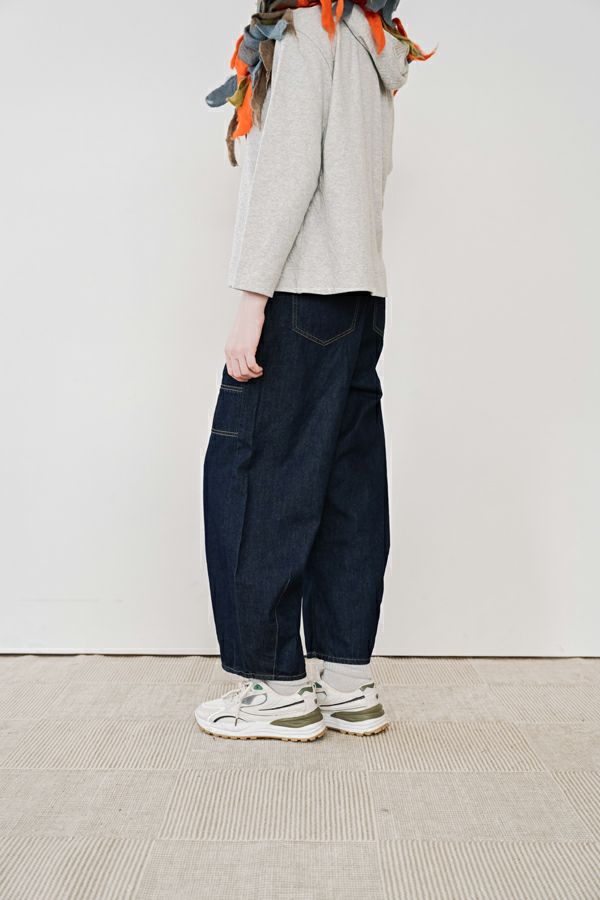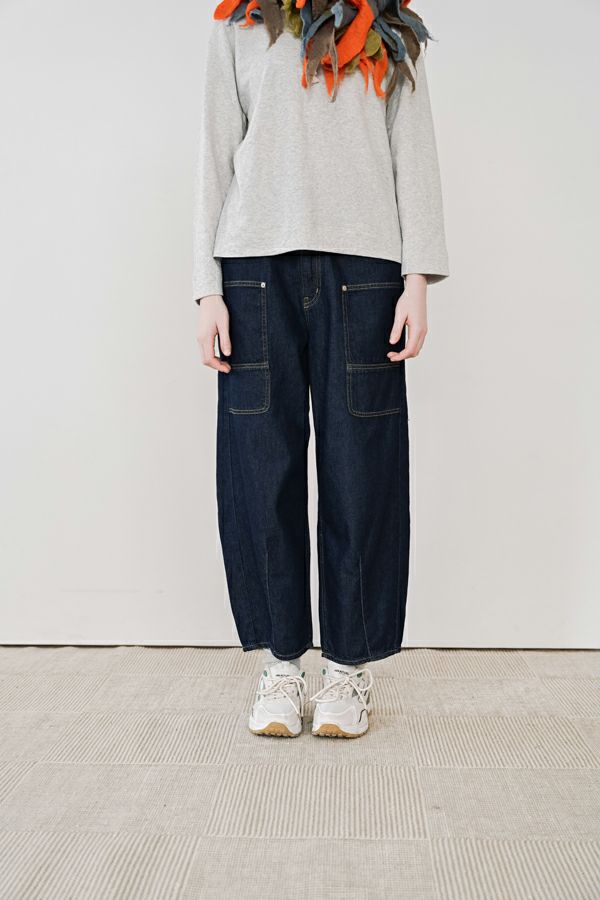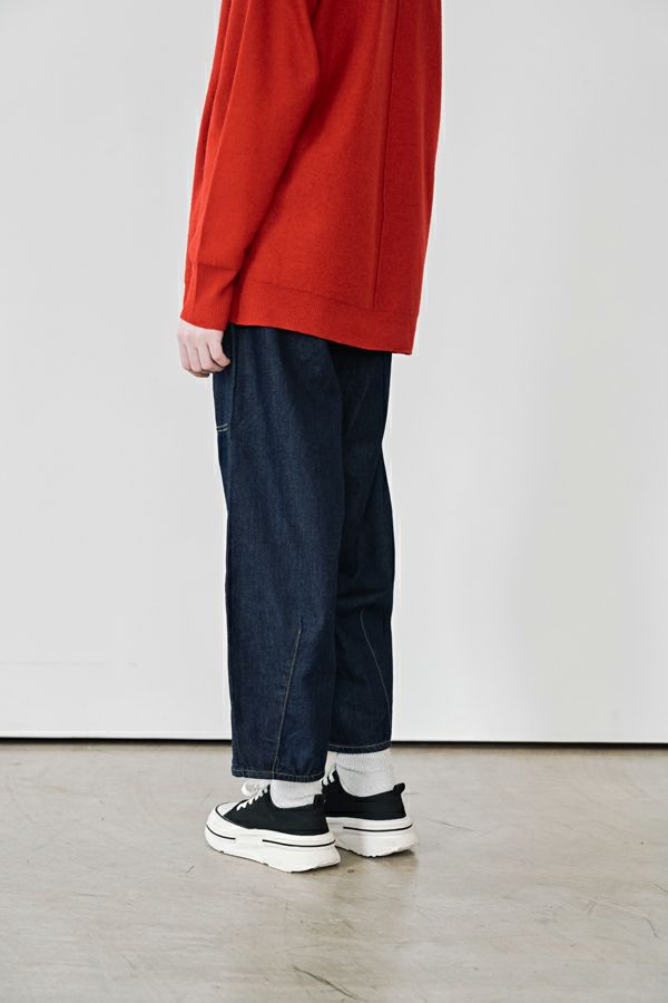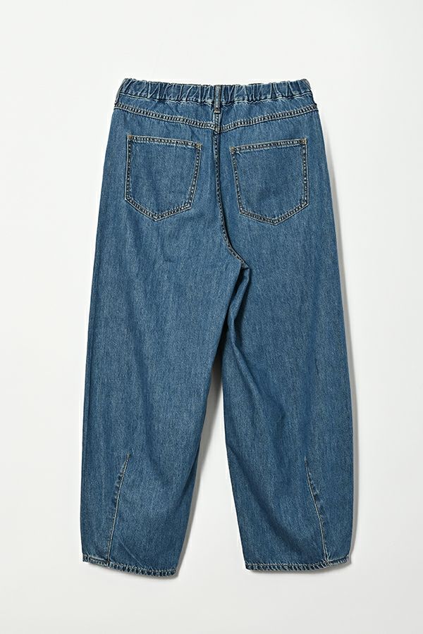 軽やかに纏う、大人デニムの新定番。 akane初の本格ジーンズとして誕生した、大人のための洗練デニム。長いシーズン心地よく着用できるよう、7.8オンスの薄手デニムを採用。薄手ならではの軽やかさと自然な落ち感が、デニム特有の重さを感じさせず、すっきりとした美しいシルエットを叶えます。 後ろウエストはリラックス感のあるギャザーゴム仕様で、程よくゆとりのあるはき心地。裾に長めのダーツを入れることで広がりすぎず、品のあるコクーンラインに仕上げました。 大人カジュアルからナチュラルモードまで、幅広いスタイルで活躍する一本です