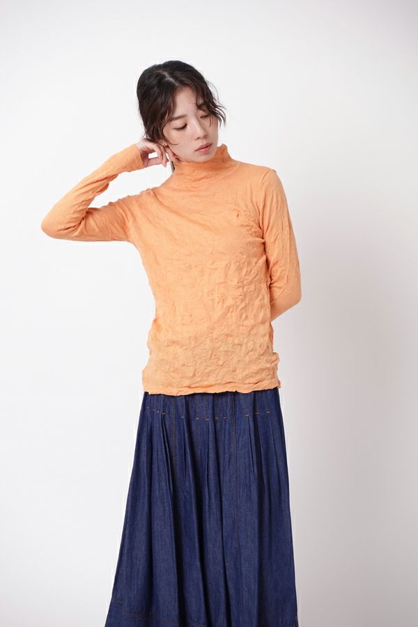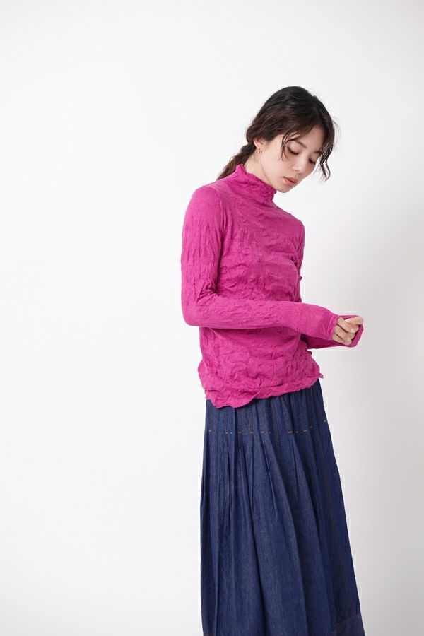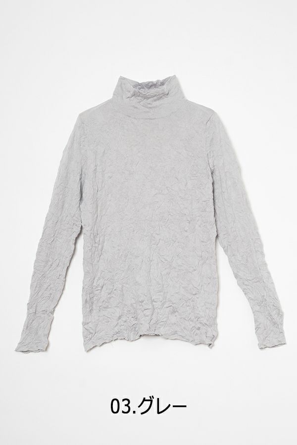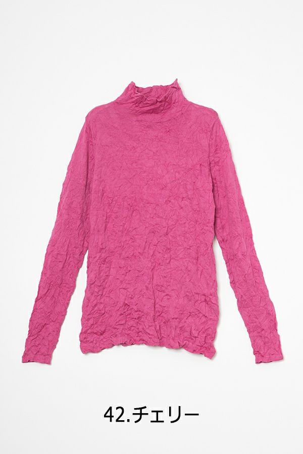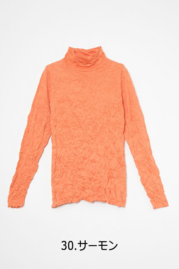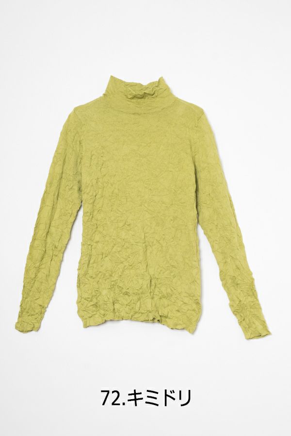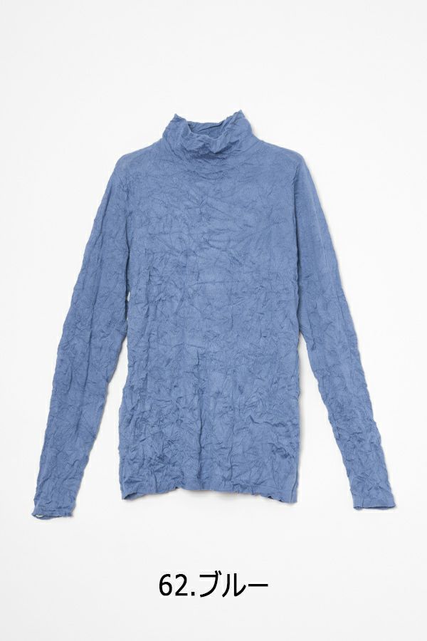 伸びも良く何度も着たい優しい肌触りのシワ加工プルオーバー 肌触りの良い綿ポリエステルの素材で、真夏以外年中着用可能な素材です。チクチクするの素材はイヤ!とおっしゃるお客様には、喜んで頂ける定番ロングランヒットの一着です。お色違いで買い揃えても後悔しません。 職人の絶妙な加減で作られているシワ加工製品は一枚一枚のシワの出方が違う希少価値の高い製品です。ランダムに入るシワによって体型が出にくい外観にもなっています。 衿の高さは、高すぎず低すぎない実用かつ、オシャレに着こなせる衿元を実現。色々なアイテムの着合わせに最適です。綿とポリエステルの混紡素材で、ソフトな肌触り。 シワ加工に必ず必要なポリエステルは、ポリステルの特徴である熱に強く一度熱で変形させると元に戻らない性質を利用。ポリステルの混率が高いほどシワ加工のセット性も高くなります。今回ポリエステルの特性を生かして肌に優しい天然繊維の綿素材との混紡素材で市場では少ないシワ加工のセーターを作りました。