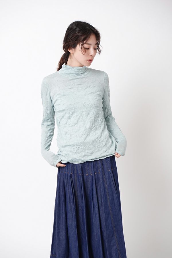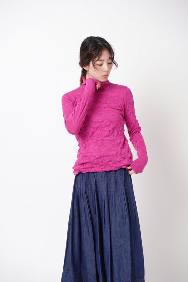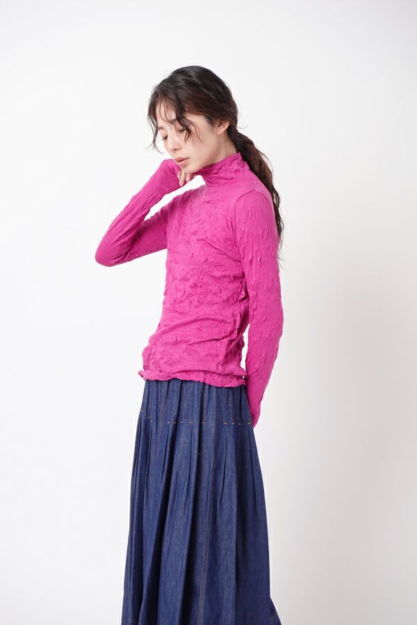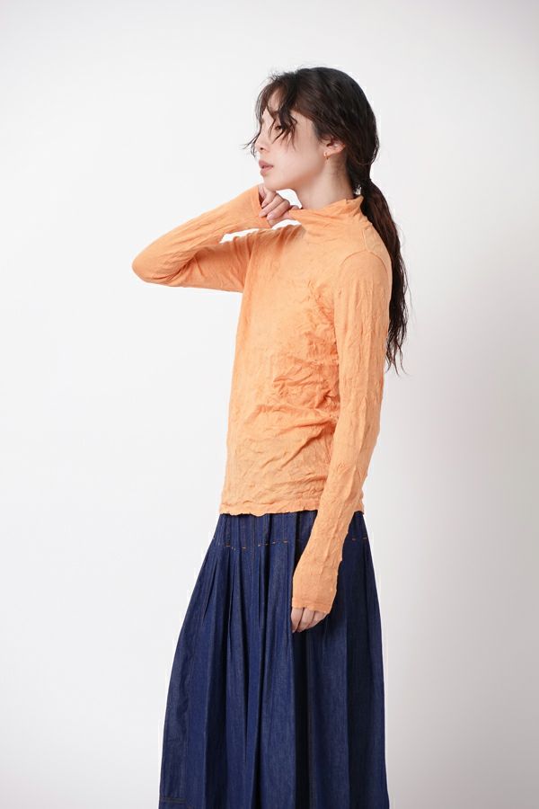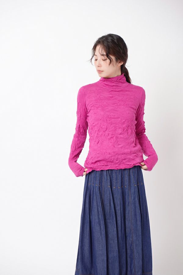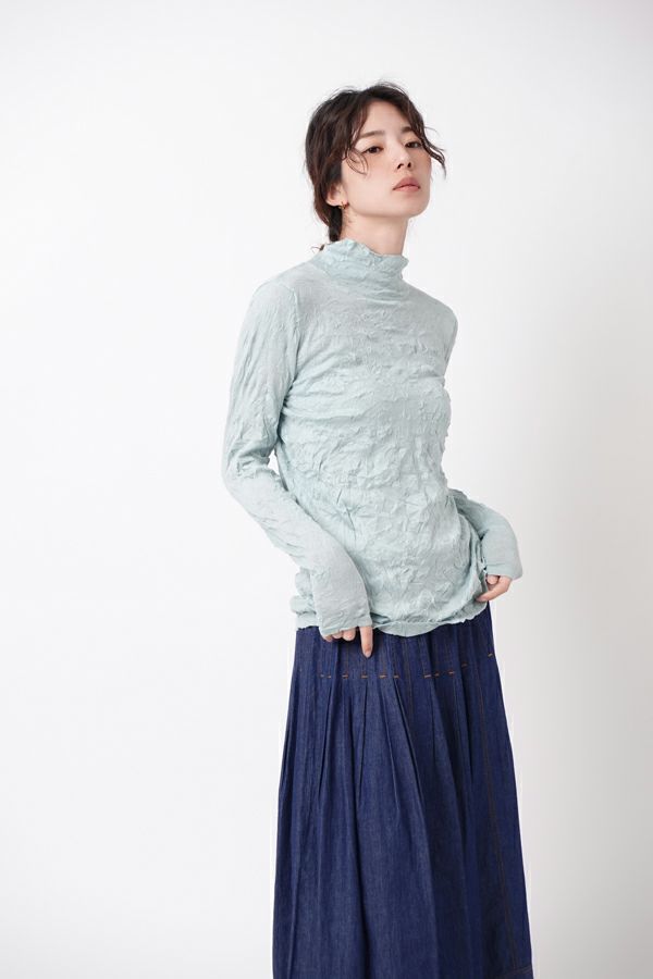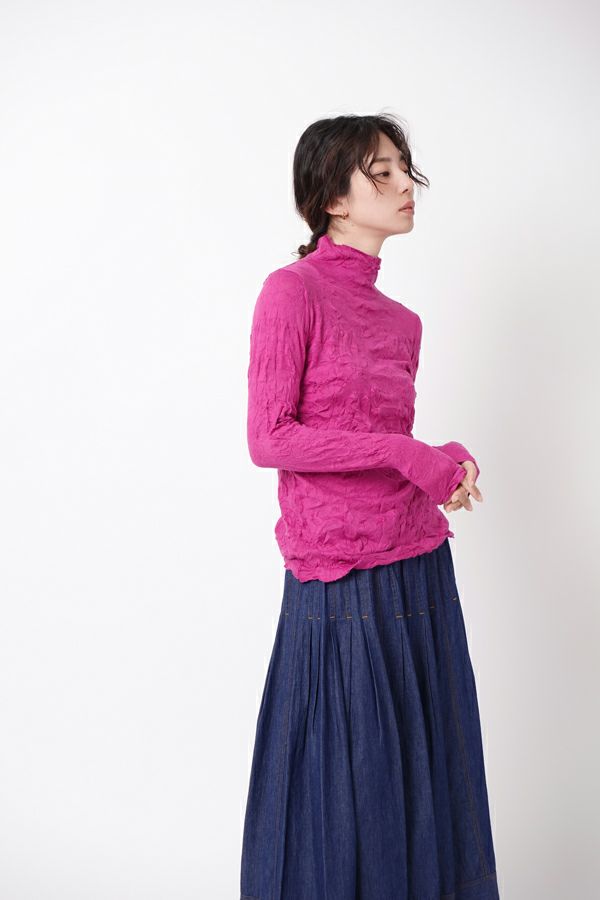 伸びも良く何度も着たい優しい肌触りのシワ加工プルオーバー 肌触りの良い綿ポリエステルの素材で、真夏以外年中着用可能な素材です。チクチクするの素材はイヤ!とおっしゃるお客様には、喜んで頂ける定番ロングランヒットの一着です。お色違いで買い揃えても後悔しません。 職人の絶妙な加減で作られているシワ加工製品は一枚一枚のシワの出方が違う希少価値の高い製品です。ランダムに入るシワによって体型が出にくい外観にもなっています。 衿の高さは、高すぎず低すぎない実用かつ、オシャレに着こなせる衿元を実現。色々なアイテムの着合わせに最適です。綿とポリエステルの混紡素材で、ソフトな肌触り。 シワ加工に必ず必要なポリエステルは、ポリステルの特徴である熱に強く一度熱で変形させると元に戻らない性質を利用。ポリステルの混率が高いほどシワ加工のセット性も高くなります。今回ポリエステルの特性を生かして肌に優しい天然繊維の綿素材との混紡素材で市場では少ないシワ加工のセーターを作りました。