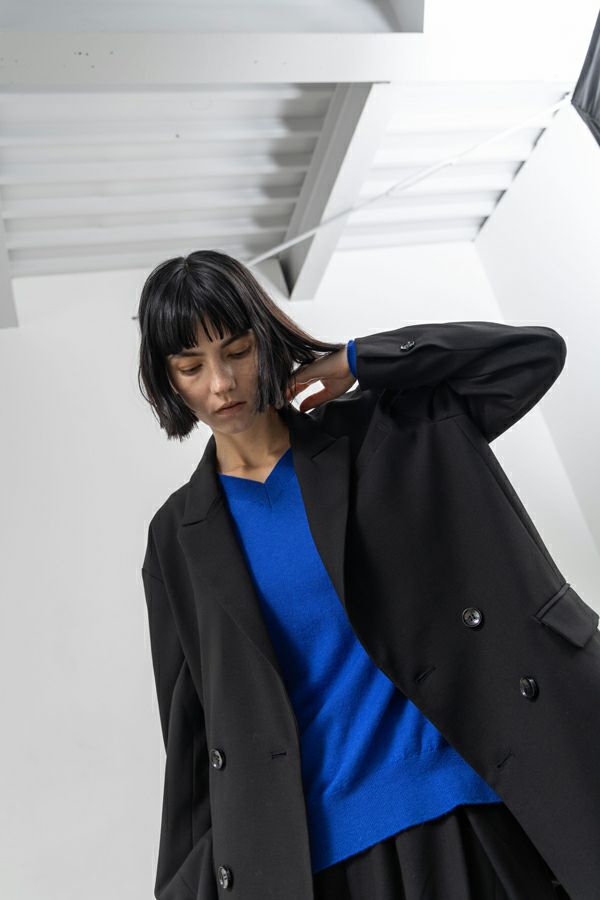 鮮やかなカラーが目を惹くシンプルデザインのVネックニット。 程よくゆとりのあるシルエットに肩をドロップすることで抜け感をだしつつ、前後差のある着丈が女性らしい印象をプラスしています。首元は開きすぎないのでさっと1枚でサマになり、テイスト問わずに着られるのでヘビーローテーションで活躍するニットです。 ボトムスを選ばず、スカートやパンツスタイル、ワイドシルエットのパンツやタイトなスカートにも合わせられます。ジャンパースカートやサロペットのインナーとしても、大人のカジュアルスタイルになじむので重宝します。 秋の装いに寄り添うデイリーに活躍するアイテム。