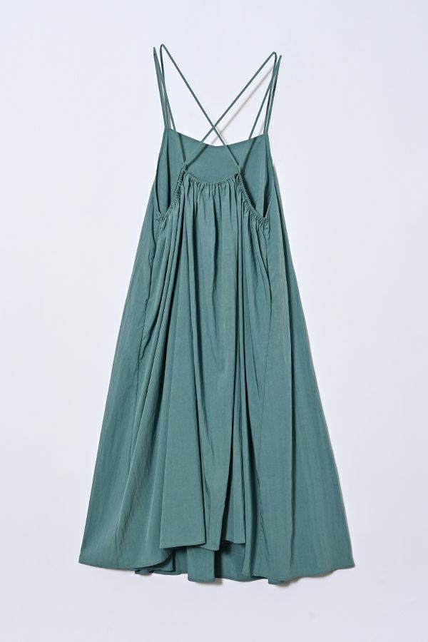 ※※ 追加生産決定!!ブラック8月中旬ごろ入荷予定!※※ 秋品番に変わります、キャミワンピース(商品番号 25213-2351E) 検索窓にて「キャミソールワンピース」もしくは下「2351」を入力いただきますとスムーズにご覧いただけます。 バックシャンもお洒落に魅せる、大人っぽさを高めるキャミワンピース。 マットな光沢感と自然なシボ感で表情のある素材が印象的。春から秋まで着れ、3シーズン対応可能です。 蹴回し(裾回り寸)をたっぷりとった贅沢なフレアシルエットで、体のラインを拾わずストレスフリーな着心地です。華奢なストラップでワンピースの丈が2段階調節出来る仕様になっているのも嬉しいポイント。後ろ姿も抜かりなく、女性らしい印象を醸し出してくれます。 インナーにTシャツを重ねたり、上にGジャンやスプリングジャケットを羽織ったりと、着回しも様々楽しめます。春はロンTEE、夏は半袖プルオーバー、秋はハイネックプルオーバーと、季節によって旬のレイヤードを楽しんで下さい。 ●同型でプリントタイプ(25173-2352E)も有