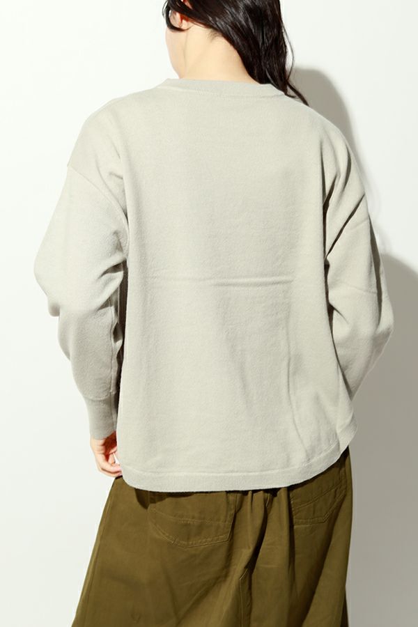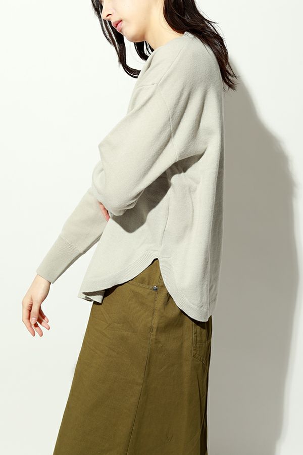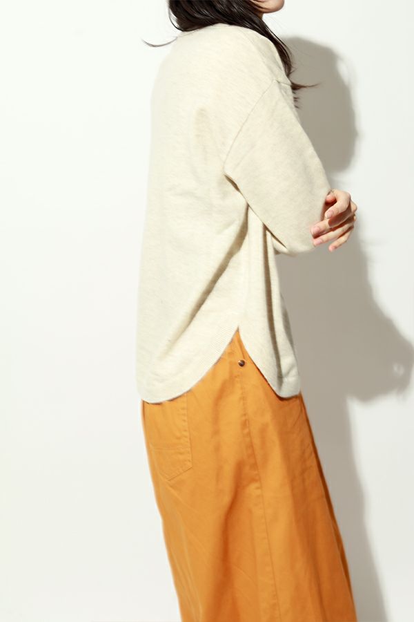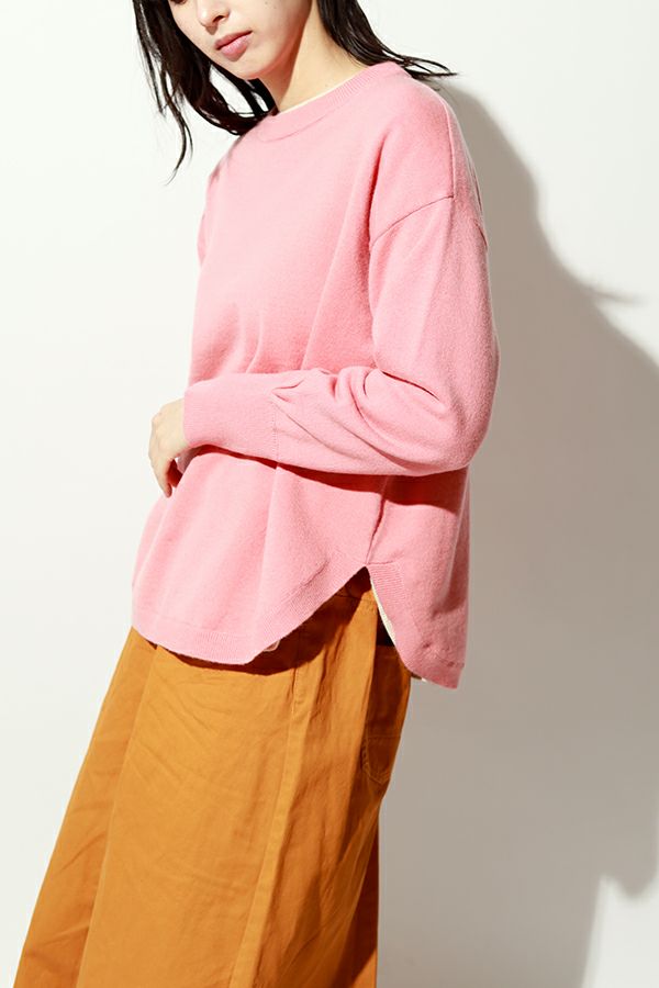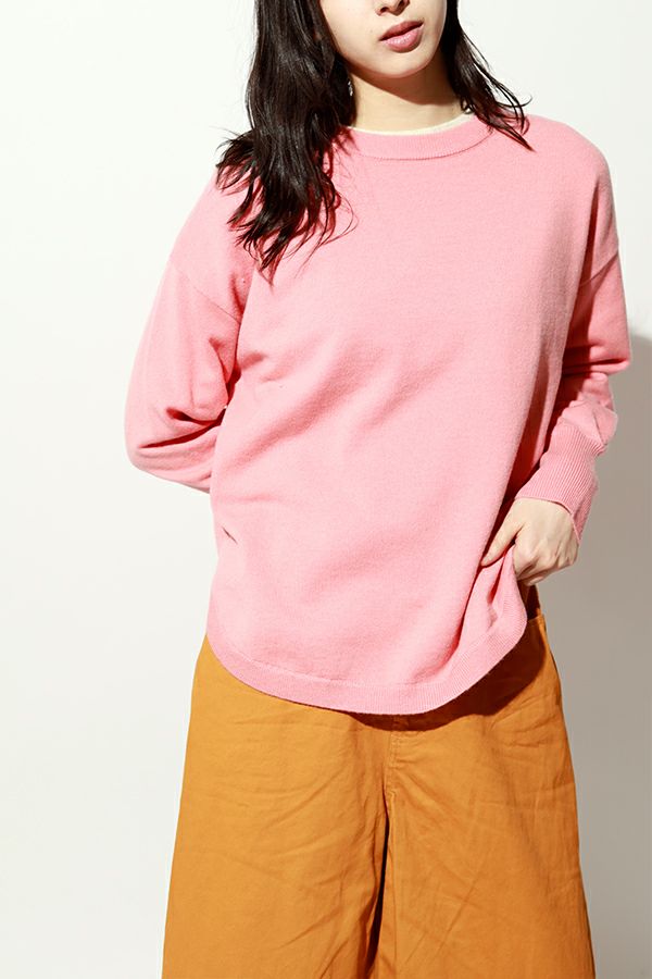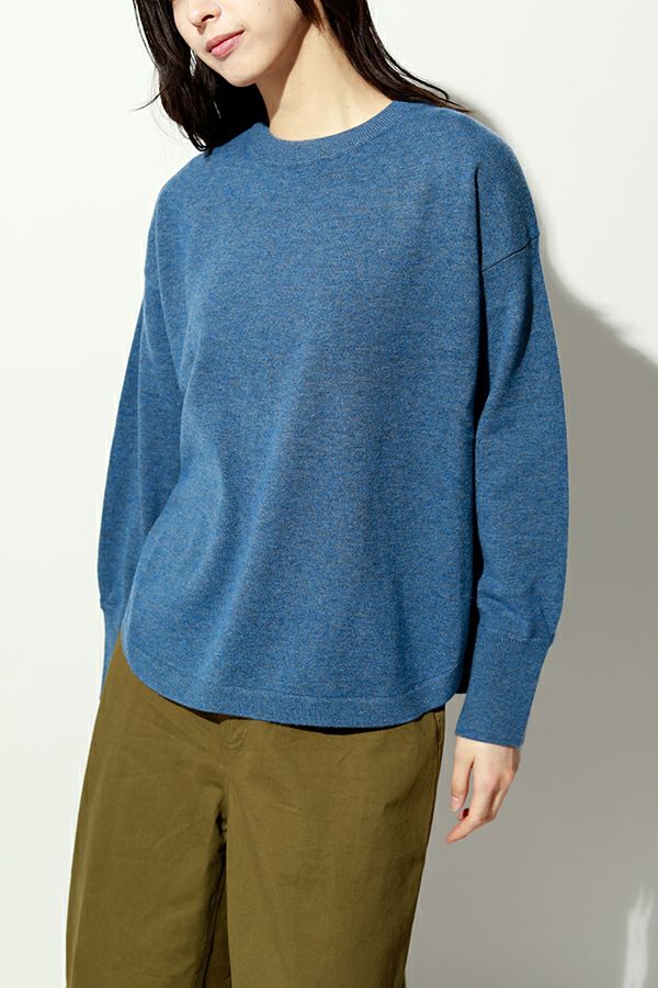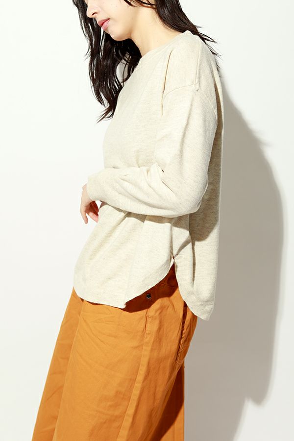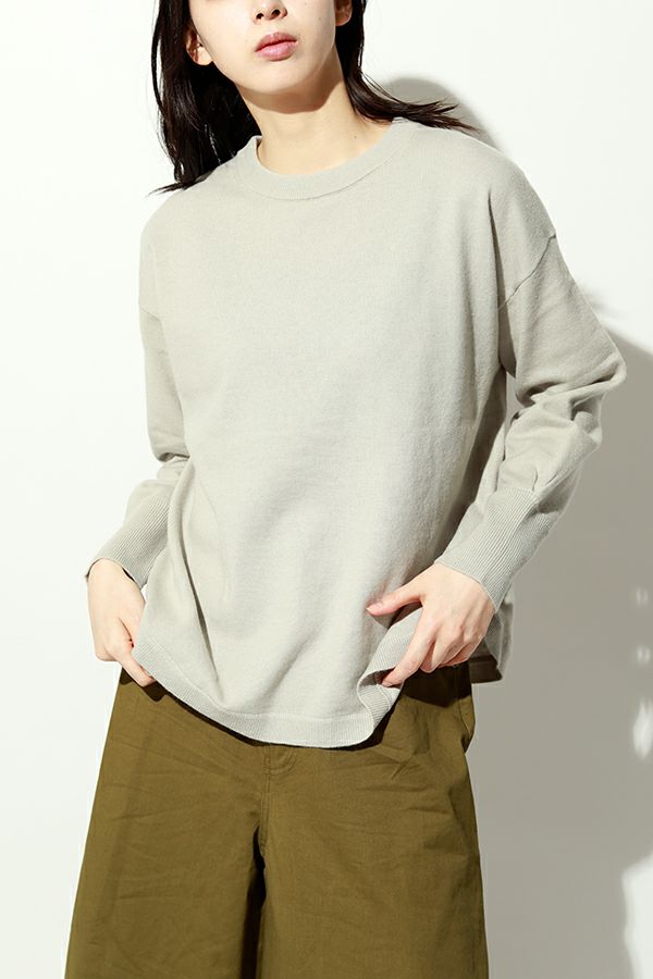 “ゆるさ”に宿る、品とクラス感。大人が着映えるニットプルオーバー。 リラクシーでありながら、どこか凛とした佇まい。 絶妙なゆとりを持たせた身幅と袖、ウエスト周りを優しく包むラウンドヘムは、ボディーシルエットを視覚カバー。深めに入れたサイドスリットが、パンツにもスカートにも美バランスでなじみ、軽やかな抜け感を演出してくれます。 袖口には、長めリブにタックを効かせたさりげないアクセント。柔らかく上品なタッチのウール混ニットは、ベーシックな一着に宿る、"大人のこだわり"が詰まった存在。 肌寒い日には一枚で、真冬にはシャツやブラウスとのレイヤードで、着こなしに奥行きを。シンプルに着ても、どこか洗練。カジュアルにもキレイめにも対応する、優秀ニットです。 ●手洗い可