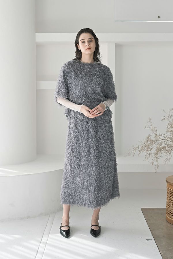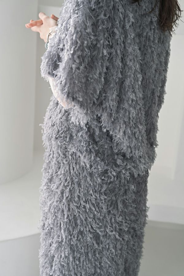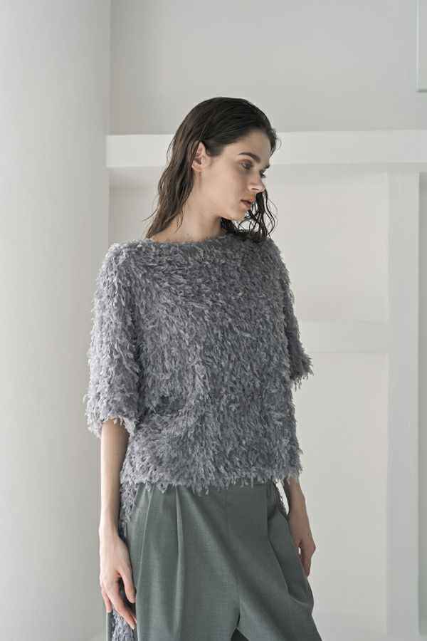 スタイリングを華やかに格上げする、フェザープルオーバー。 Tシャツ型で着脱しやすく、エアリーでやわらかなフェザー感が女子力をUPしてくれます。シンプルスタイリングでカジュアル使いからパーティーシーンまで幅広く活躍できる優秀アイテムです。 1枚で着用はもちろん、ジャケットのインナーやシャツとのレイヤードもお薦め。ボトムはデニムやワイドパンツ、タイトスカートなど幅広いアイテムでも好相性。 ●サイドフェザーパンツ(25228-9414D-G)とセットアップ可