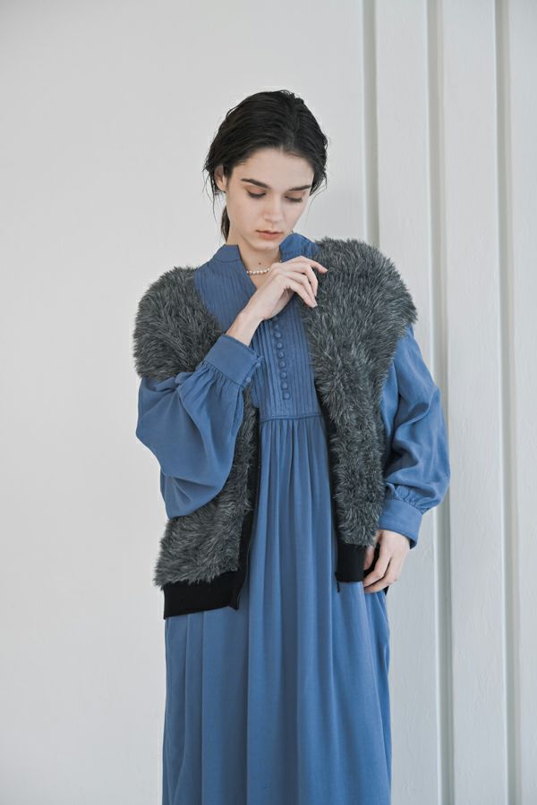 ふわふわミックスカラーが魅せる、こなれ感たっぷりのニットベスト。 ミックスカラーのふわふわとした毛足が目を惹く、華やかな印象のアイテム。 適度にドロップしたショルダーと、後ろ裾がラウンドして下がるデザインが、女性らしいこなれ感を演出します。スッキリとしたネックラインにシンプルなファスナー仕立てを施し、前を開いたままの着用でサマになる一着です。 気温差の激しい季節の変わり目にカジュアルなロンTEEやシアートップスの上に重ねるだけで、おしゃれ度がグッと上がり、大人の抜け感をお楽しみいただけます。ワンピースの上にレイヤードすれば、レディーライクなコーデが完成します。