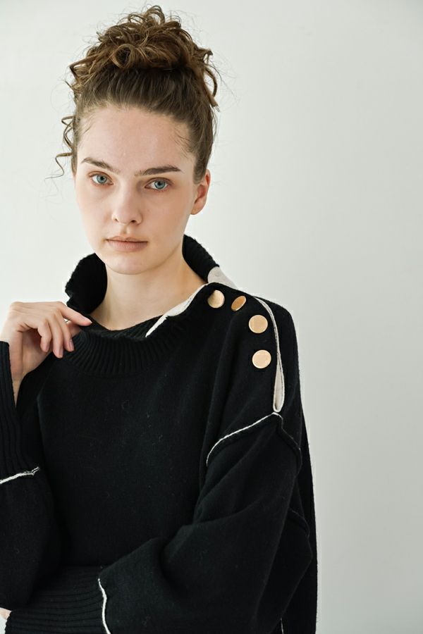 着るだけで決まる、色で遊べる。大人のための万能チュニックニット。 ゆとりのあるサイジングはサッと着こなすだけでサマになり、さりげないバイカラーデザイン、程よくボリューム感のある袖に長めの袖リブ設定でスリットを入れてクールな印象を演出。 ヒップを隠してくれる嬉しいチュニックレングスにはサイドに深めのスリットを入れて、腰周りがリラクシーに着用いただけるシルエットになっています。パンツだけではなくスカートに重ねてもバランスが取りやすいデザインに。 ハイネック衿は着苦しさを感じないようにほど良くゆとりを入れて首に沿う設計なのも嬉しいポイントです。 冬のワードローブに色違いで揃えたくなる、汎用性の高いチュニックニット。 c/#赤・ブルーはシルバーボタン仕様で、パンツスタイルでマニッシュな印象に。 c/#キミドリ・黒はゴールドボタンがポイントとなり、きれいめスカートと合わせてクールなオンスタイルも楽しめます。 シーンに応じて異なる表情が楽しめる、着回し力の高い一枚です。