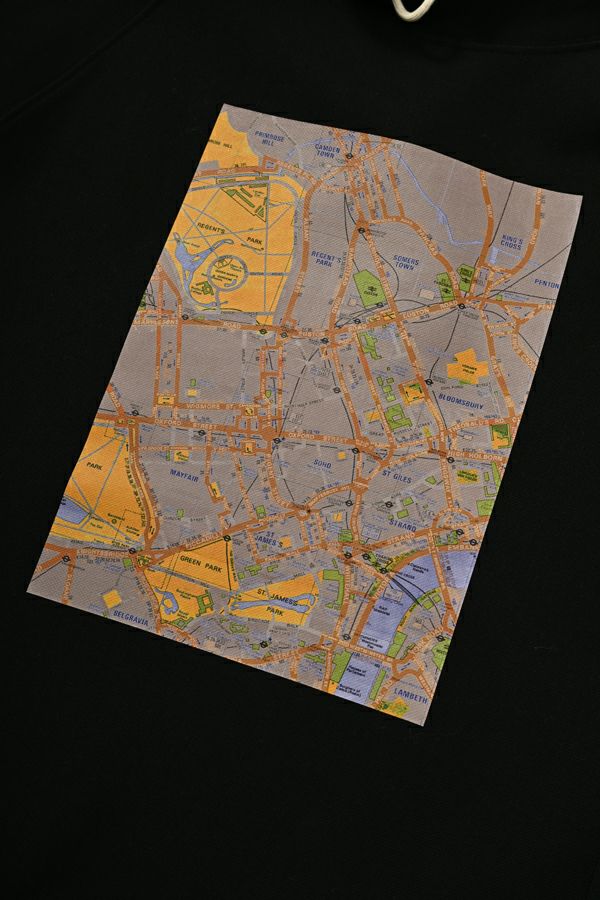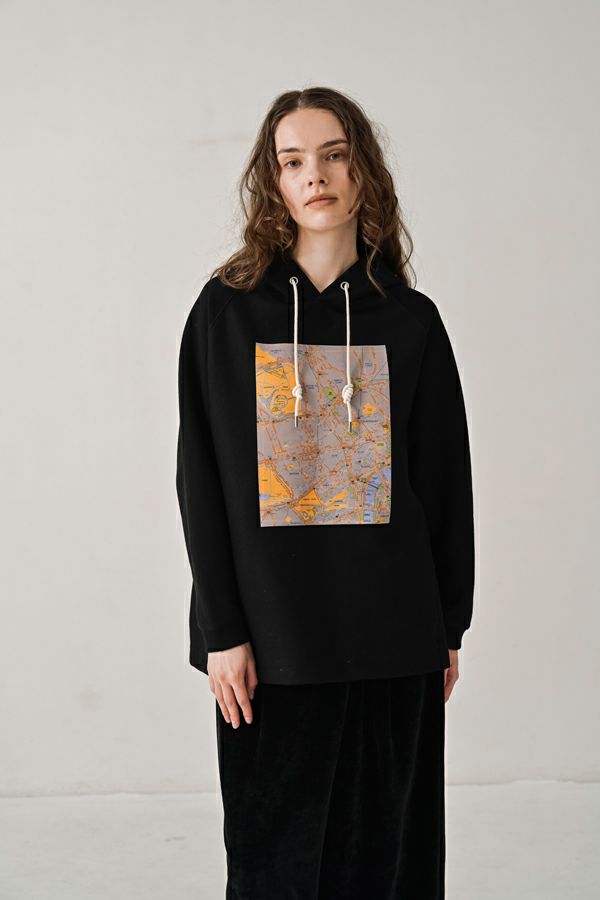 静かな存在感が視線を誘う、大人のためのパーカー。 表面にほどよい表情を持つ綿/ポリエステル素材が、しっかりとしたハリを保ちながらも心地よい着心地を実現。ヒップを美しくカバーするチュニック丈のオーバーシルエットが、大人のカジュアルダウンに品のある抜け感を添えます。 ロンドン郊外の地図をモチーフにしたプリントは、バーズアイ=鳥の視点から見た風景をイメージした独特のデザインで、静かな物語性を醸し出します。 視線を誘う一枚で、日常にさりげないモード感をもたらします。