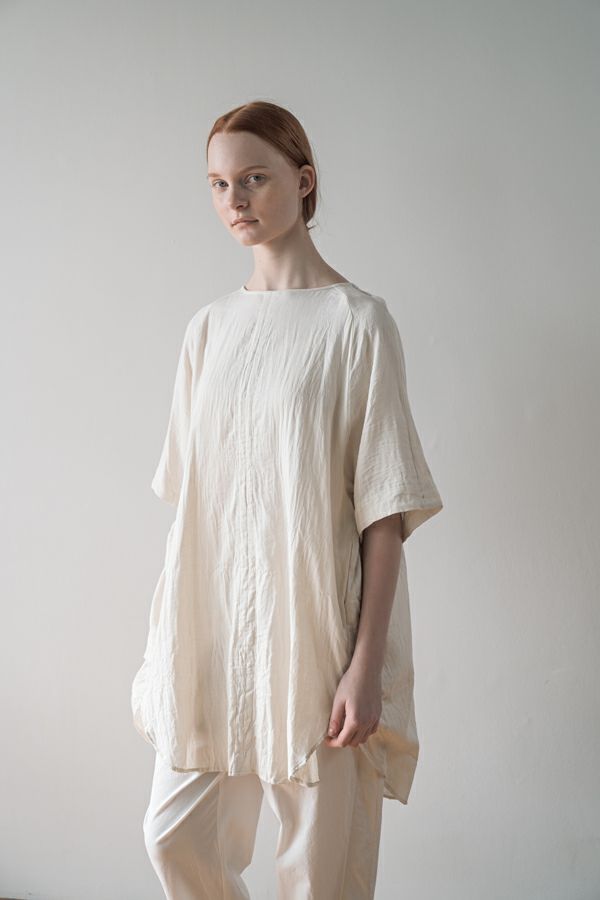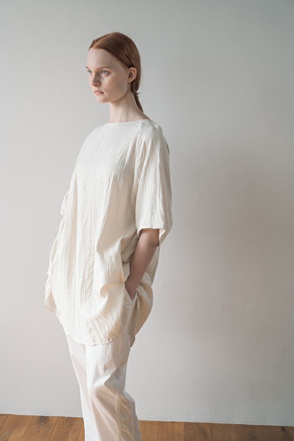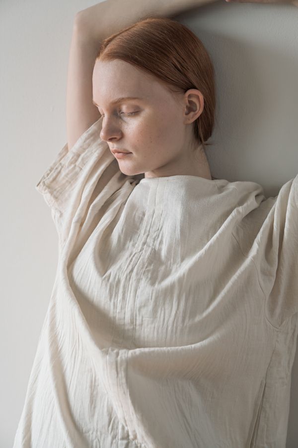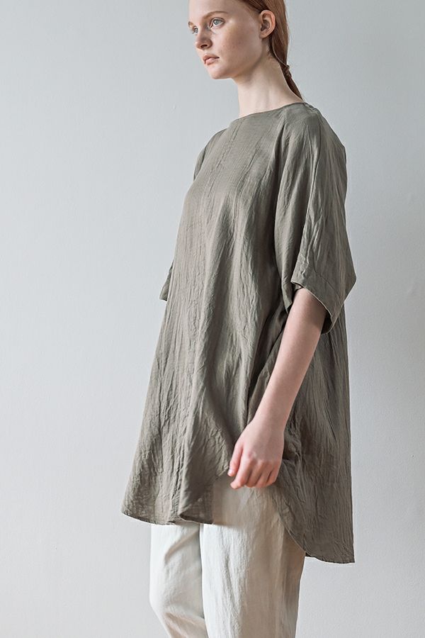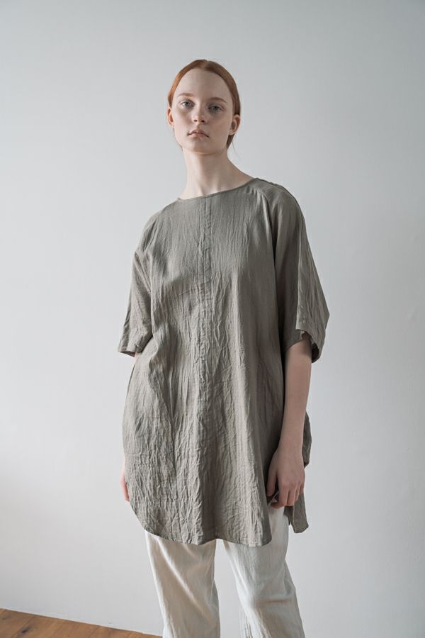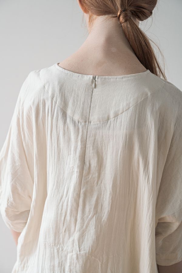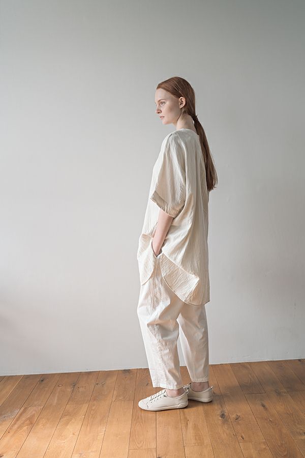 デリケートなお肌の方にも安心の着心地を提案、ナチュラルなチュニックワンピース。 今夏から新シリーズの「BINKAN-SAN」 *カサカサした乾燥肌 *ホルモンバランスや季節によってゆらぐ肌 *アレルギーの痒みや肌トラブル *静電気の刺激で痒みやチクチク ずっと敏感肌で悩んでいたデザイナー目線でデリケートなお肌の方にも安心の着心地を提案します。素材だけでなく内側の縫製にも気遣い、一番気になるチクチク感が無く、オールシーズンにわたり、つい手に取ってしまうシリーズです。 日本製のソフトで膨らみのあるダブルガーゼ素材は、イージーケアでソフト。サラッとした肌触りが良い、自然な風合いそのまま、ノーアイロンで着用可能。 体を包みこむようなゆったりした分量感とラグラン袖。気になる体形をすっぽり隠しながら1枚でサマになるコクーンシルエットアイテムです。 前中心の縦に入っただダブルステッチと、前寄りの脇線が視覚効果でスッキリ見せてくれます。大きくラウンドした脇裾と深いスリットで、足さばきも良く歩くたびにソフトな素材感に動きが出て、大人の余裕を醸し出す。 ●日本製