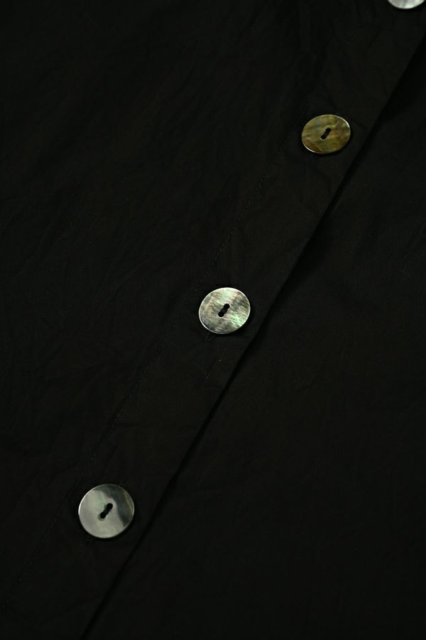 軽やか&立体シルエットが魅力、バックフレアシャツブラウス。 ワッシャー加工を施したバックフレアデザイン×チビ衿のシャツ。クロップド丈にすることで軽やかさをプラスし、甘すぎず洗練された立体感のある一枚に仕上げました。 前を閉じればコンパクトなシルエットでスマートに、フロントボタンを開ければ、軽やかな羽織りスタイルに。裾のたっぷりとした分量感が、気になるお腹周りを自然にカバーしてくれます。 ほどよいハリ感と軽やかな素材で、春・秋・冬と3シーズン活躍し、着回し自在。 リラックスボトムとの相性も抜群で、こなれたスタイルが完成します。 お客様の声から生まれた 左胸のアイディアポケット。(オリジナル札付き)暑い時にはアイスジェル(保冷剤)を入れて、快適に過ごせます。袋布には撥水布を使用し、溶けても安心です。