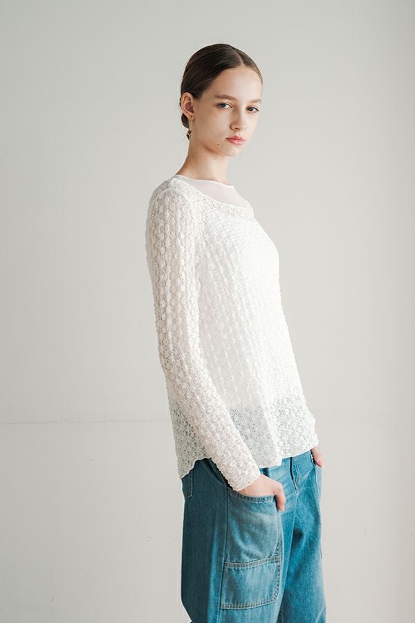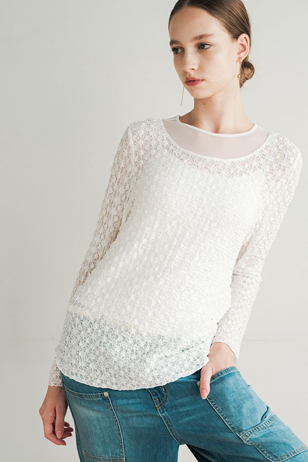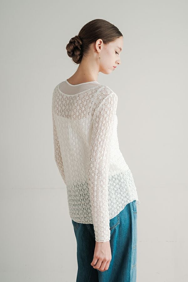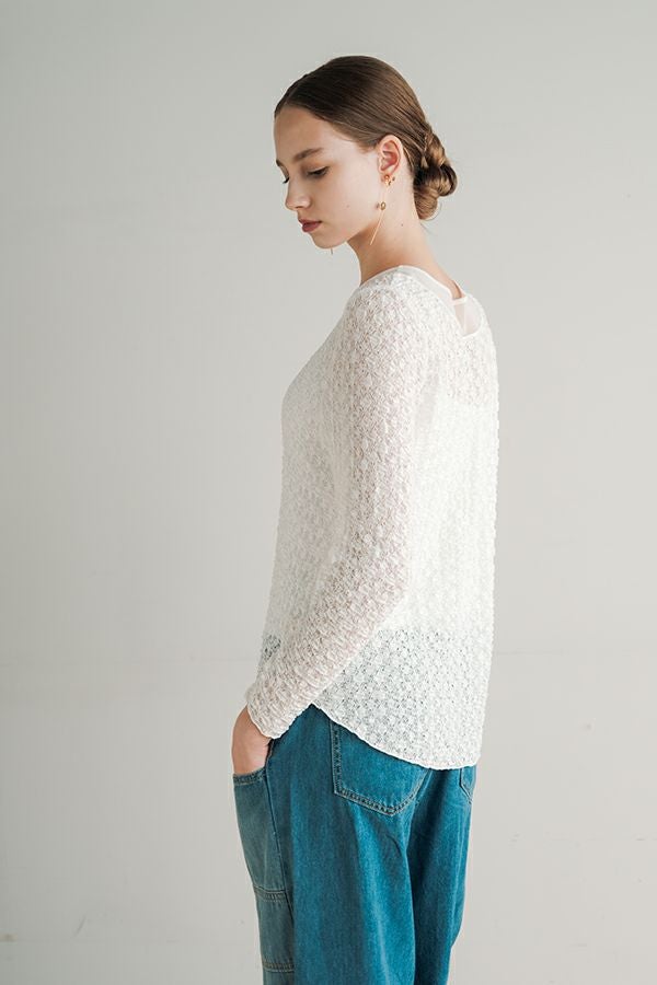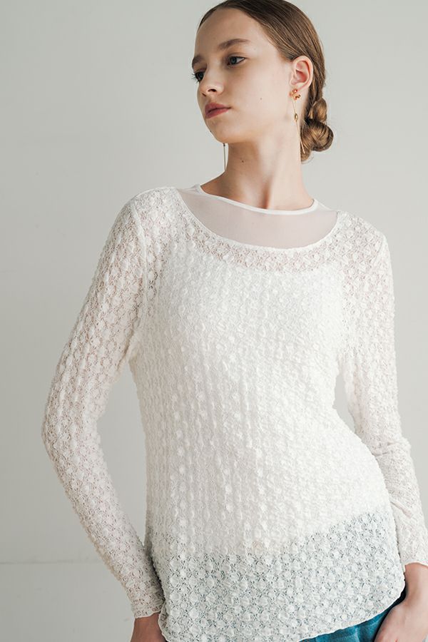華やぎと女らしさを纏う、シュリンクレースプルオーバー。