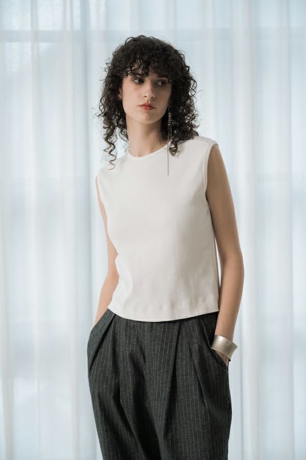 夏のワードローブに欠かせないタンクトップ。 衿元は上品に詰まったクルーネックにし、肩幅も肩先までしっかりカバーする安心のサイズ感。1枚で着ても物足りなさを感じさせないキックバック抜群の適度に厚みとツヤ感のある素材を使用。ボトムとの相性もいい抜群の丈感がスタイリングを格上げしてくれる、大人女子のマストアイテム!