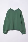 中肉の鹿の子を使用していますで初秋に薄めのトレーナー感覚で着用頂けます。 スポーティーな印象の鹿の子生地ですが、短丈のコクーンシルエットと袖口にタックのデザインを落とし込むことで女性らしさを演出し、感度の良い仕上がりに。