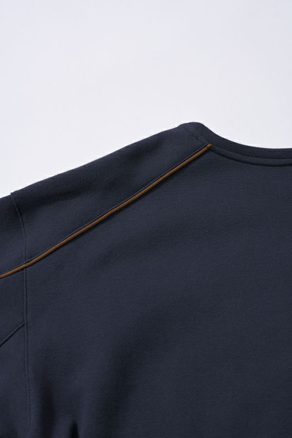 パイピングはインポートテイストな配色にし、後ろ身頃のラグランラインにも入れることで「抜け感」をプラスし より大人が着れるカジュアルなカットソーになっています。