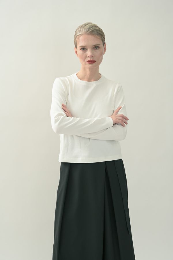 オーバーサイズのスウェットをぱつっと切ったようなデザインが可愛いショートスウェット。 コンパクトめな着丈にワイドサイズのバランスが新鮮な印象に。両脇に入った深めのスリットと左袖に入ったロゴプリントはあえて後ろよりに載せてBACKデザインを意識しました。 さっと着るだけでフォルム感があるので着映え力も抜群な一枚です! 1枚で着用するのはもちろん、シャツとレイヤードさせれば『こなれ感』のあるコーディネートが完成します。