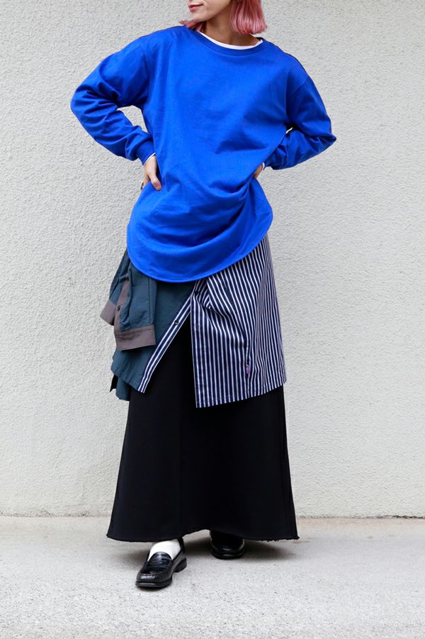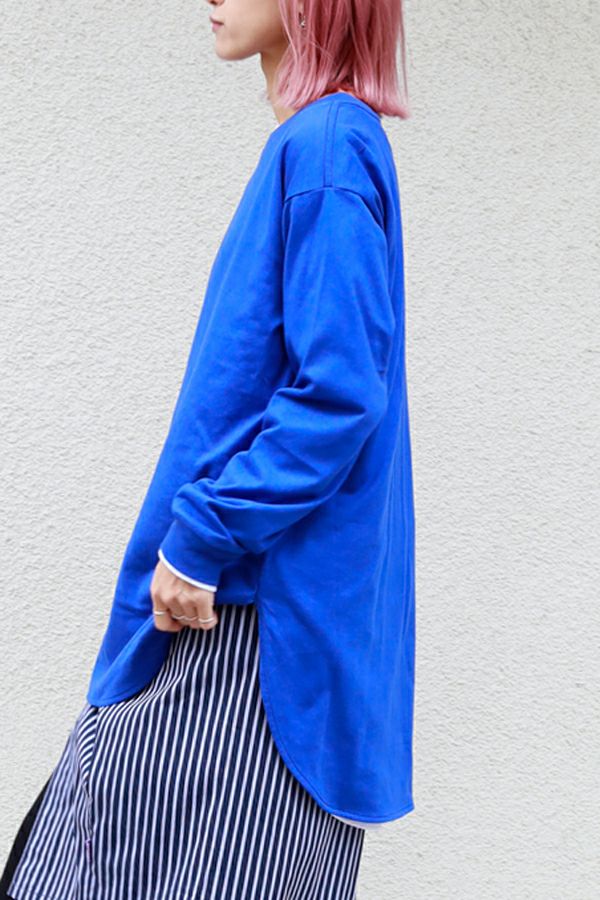 飾らない大人の魅力が引き出せるシンプル プルオーバー。 若干の光沢感と粗野な雰囲気のある天竺素材を使用。衿元のあき加減と長めの丈感が絶妙なバランス。シンプルなのに 一枚着でもサマになる。 ショート丈のプルオーバーやジャケットのインナー合わせでも存在感のある一枚です。肌触りも良く、レイヤードスタイルに使いやすいので、色違い(イロチ買い)で何枚も欲しくなるアイテムです。 ●日本製