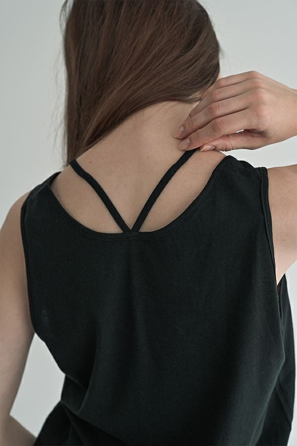 女性らしさが際立つ、定番の紐タンクトップ。