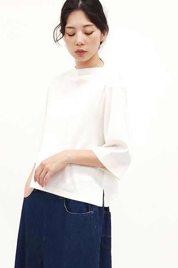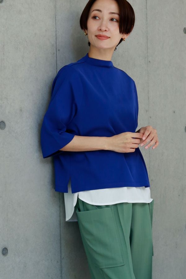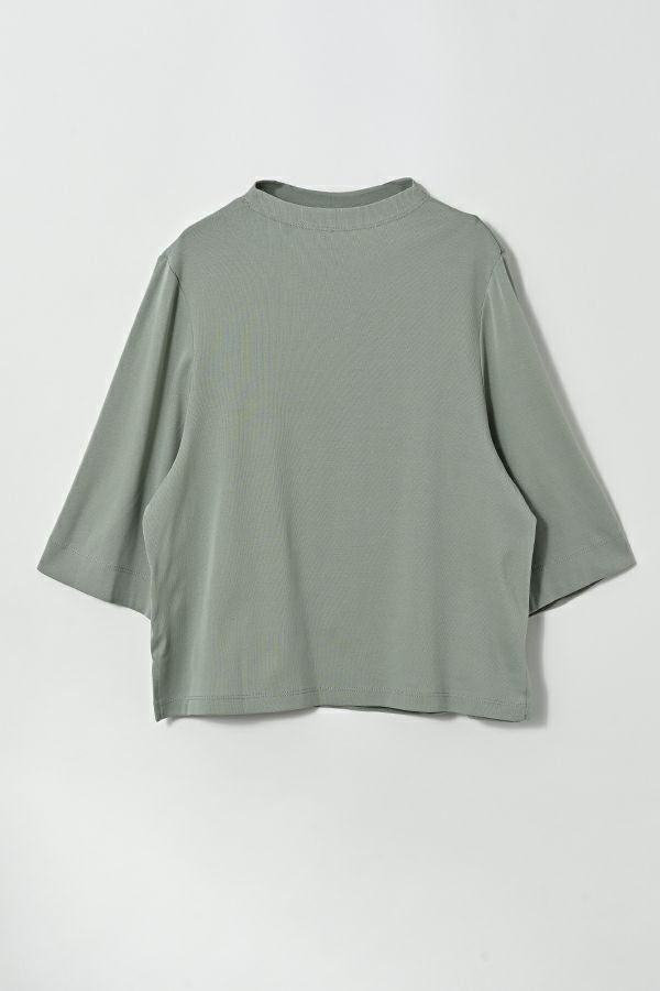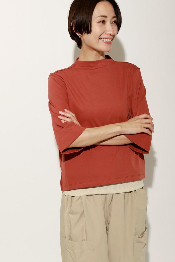 サラッと快適な涼感、大人の定番プルオーバー。akane夏の定番素材「グレシャスクール」は接触冷感で快適、上品でリラックス感のあるカットソー素材です。 気になる首周りは日焼け防止も兼ねて低いボトルネックでカバー。長めの5分袖に、程よいゆとりのサイズ感が特徴。肌にまとわりつかない素材なので、暑い時期に一枚着としてスタイリング可能。 発色がきれいなのでコーディネートのアクセントにピッタリです。カラバリ豊富な11色展開。 GRECIOUS COOL(=グレシャスクール) 独自の加工工程によって繊維を芯から改質し、膨らみと滑らかさを備えた新しい加工技術です。様々な工程の組合わせにより完成した生地で、物性安定・美しい光沢・発色性UP・キックバックの向上が特徴です。 ●日本製
