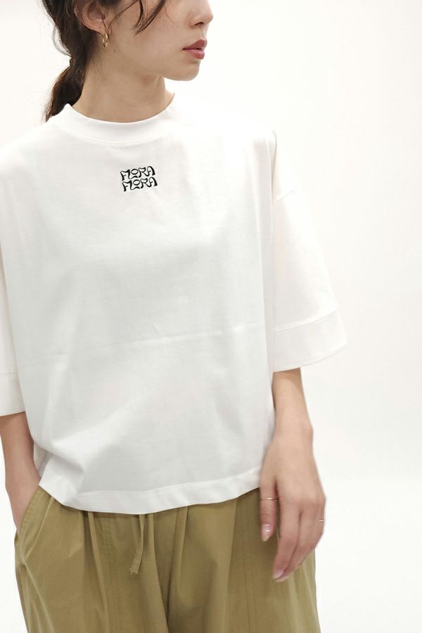着るだけで体型カバーが叶う、大人映えTシャツ。一枚着でもこなれ感のでるワンポイント刺繍入り。袖は肘にかかる位の袖丈で大人女子にも嬉しい設定になっています。 ワイドなシルエットにショート丈でバランス良くまとまった1枚。 デニムと合わせたカジュアルスタイルや、マニッシュなスラックスパンツと合わせてキレイめなコーデもおすすめ。ショート丈を活かし、カラーインナーを重ね着してチラリと裾から見せる配色などのワンテクも可能。