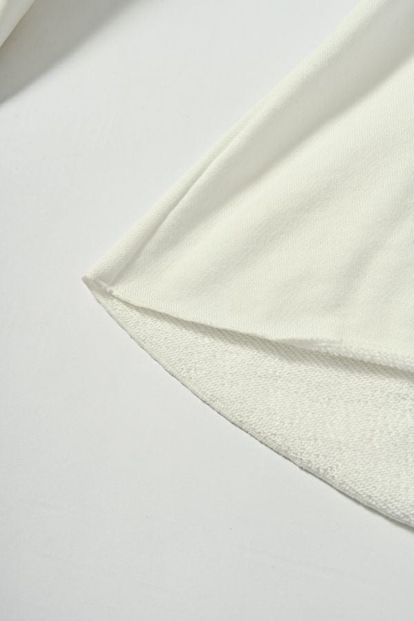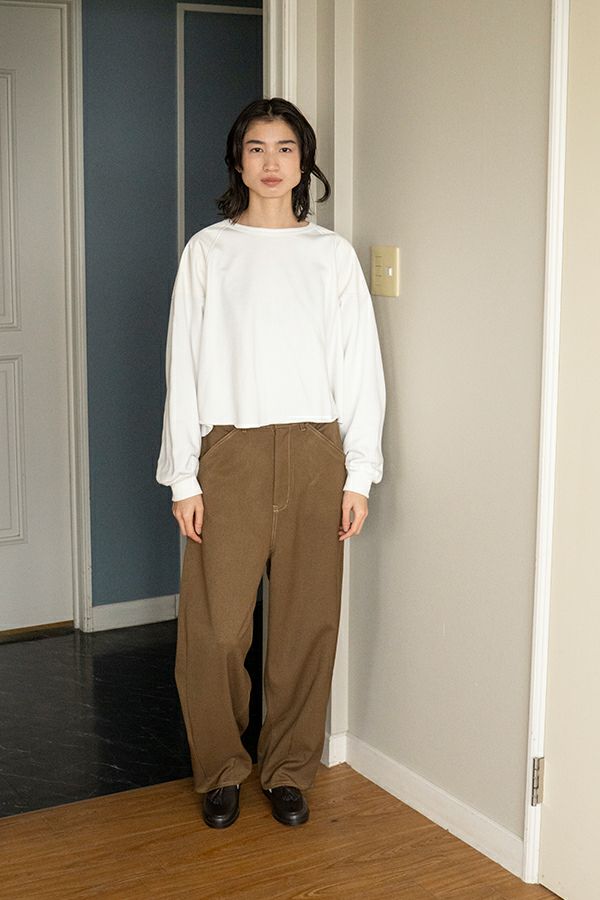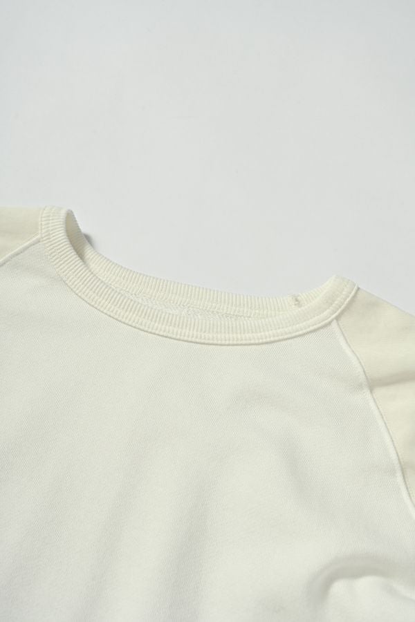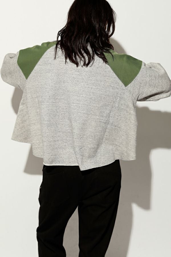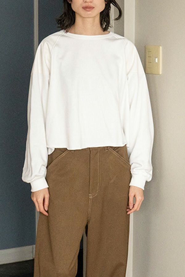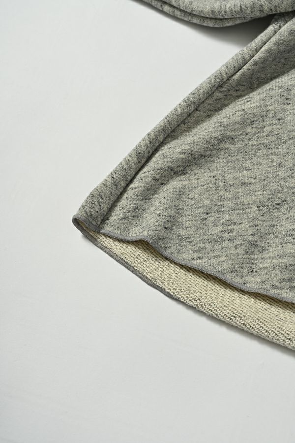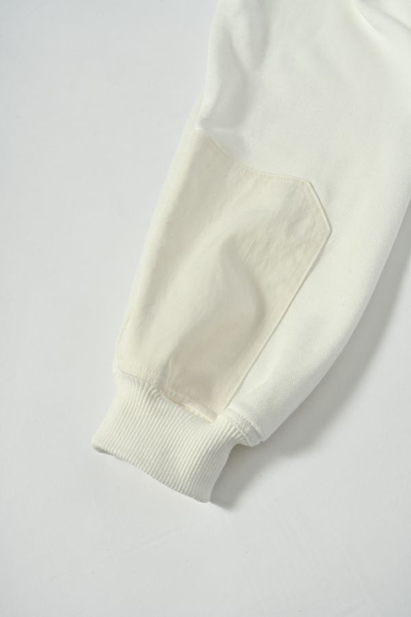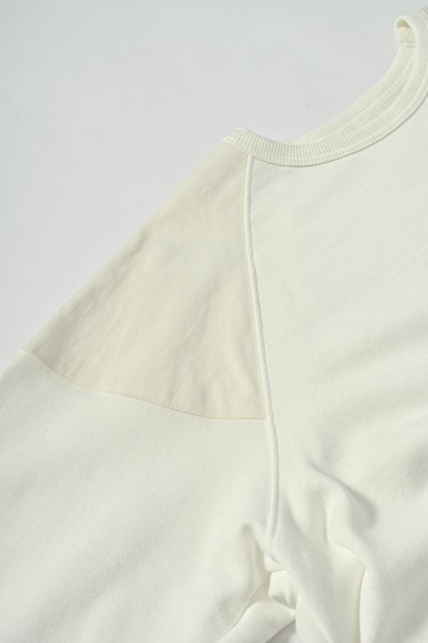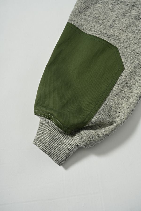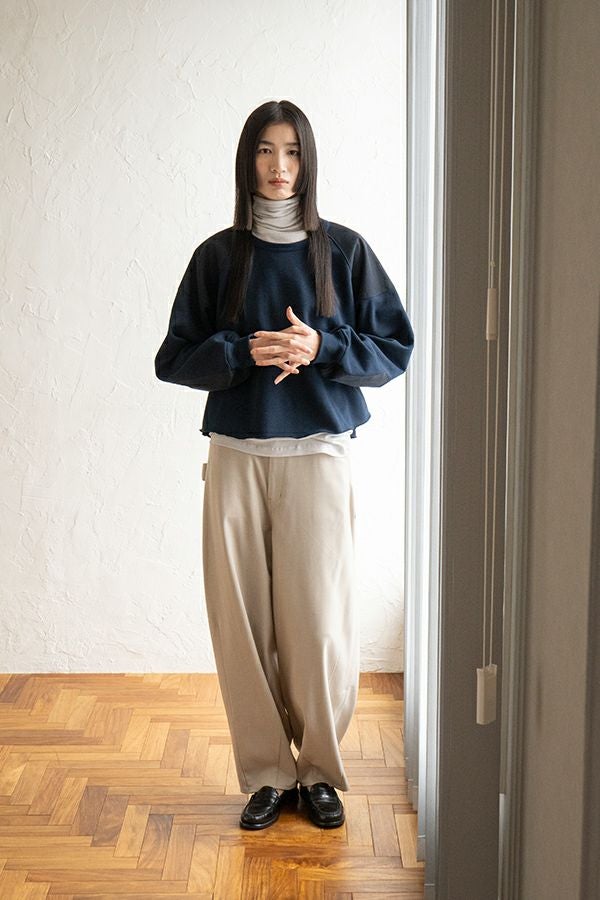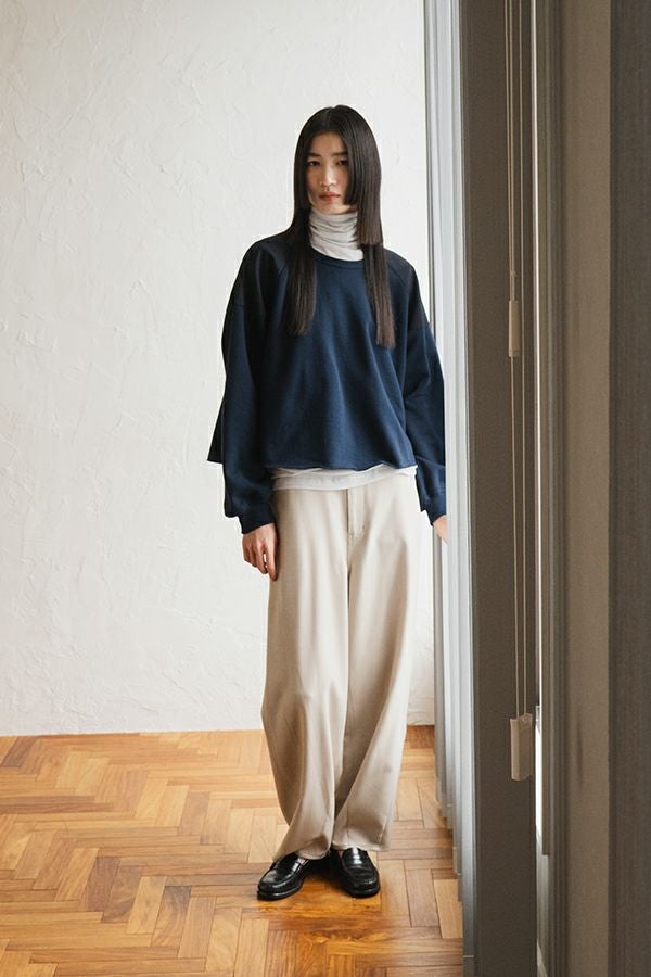 ミリタリーテイストに柔らかさを覗かせた、大人のコンバットスウェット。 ショート丈×フレアシルエットが印象的。厚みのある生地ながらふんわりとした柔らかさがあり、着るたびに軽やかな揺れを感じられる1枚です。メンズライクなディテールを、シルエットでフェミニンに仕上げた絶妙なバランス感も魅力。 素材には、軽量かつストレッチ性に優れた"フレンチテリー"を採用。通常のパイル地よりもなめらかで、肌あたりもやさしく、ふんわりとした膨らみ感が特徴です。長時間の着用でもストレスを感じさせない、柔らかな着心地にこだわりました。 デザインのベースは、ミリタリー由来のコンバットニット。ショルダーとエルボーには別素材のパッチワークを配し、配色のコントラストがアクセントに。タフさと女性らしさを掛け合わせた、大人のためのコンバットスタイルを提案します。 ●日本製