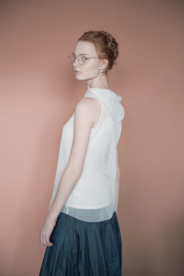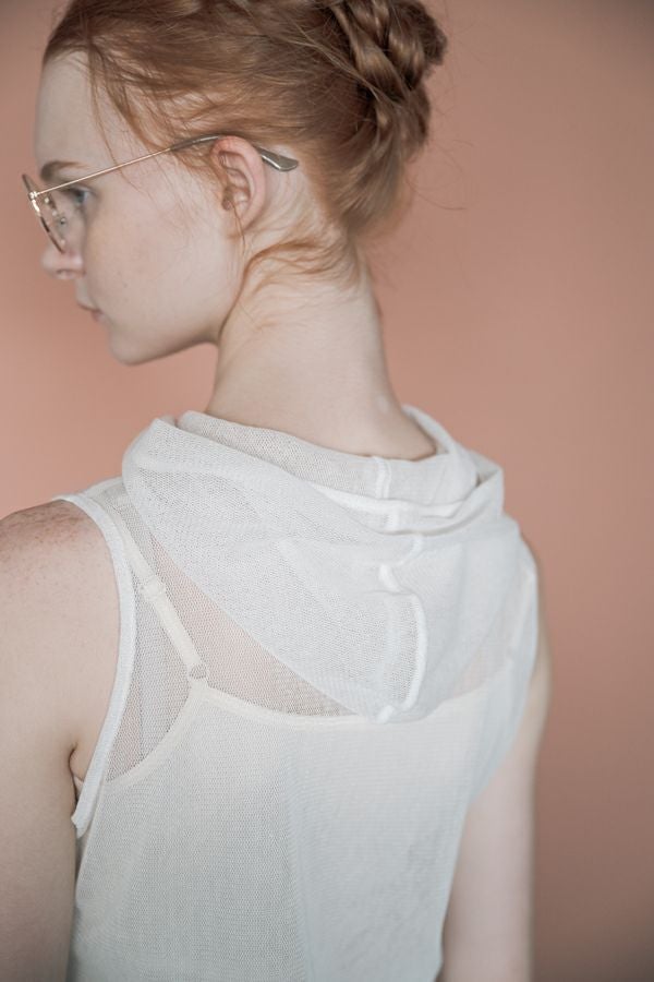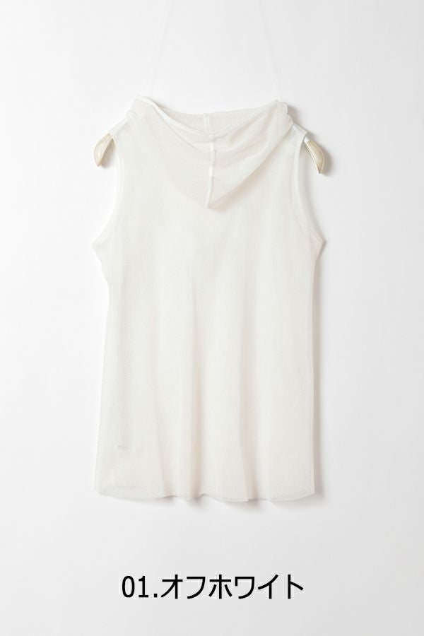 大人気!akane名品メッシュインナー サラリとした綿/ポリエステルのメッシュ素材のノースリーブインナーです。 襟ぐりからフードを出して重ね着するアイテムで軽くて顔周りも華やかにします。 襟元が開くと気になる方も、日焼け防止にもなり一石二鳥の便利な定番インナーです。