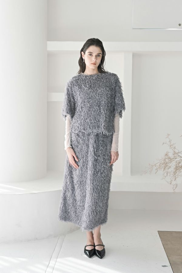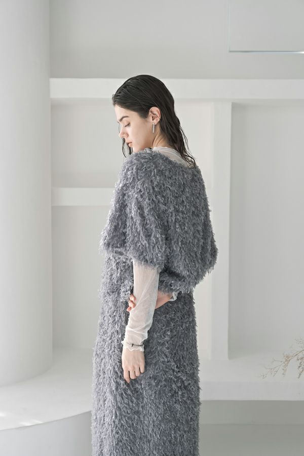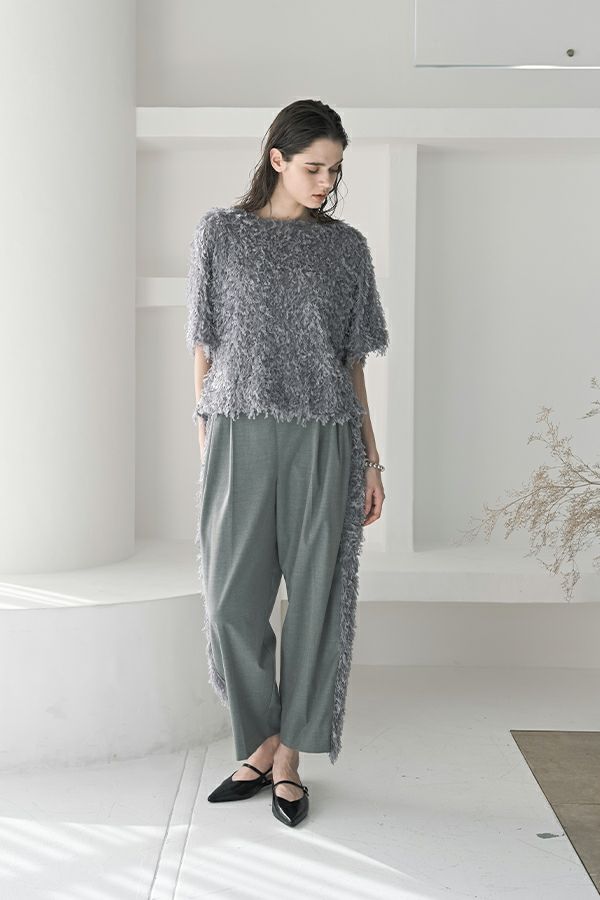 スタイリングを華やかに格上げする、フェザープルオーバー。 Tシャツ型で着脱しやすく、エアリーでやわらかなフェザー感が女子力をUPしてくれます。シンプルスタイリングでカジュアル使いからパーティーシーンまで幅広く活躍できる優秀アイテムです。 1枚で着用はもちろん、ジャケットのインナーやシャツとのレイヤードもお薦め。ボトムはデニムやワイドパンツ、タイトスカートなど幅広いアイテムでも好相性。 ●サイドフェザーパンツ(25228-9414D-G)とセットアップ可