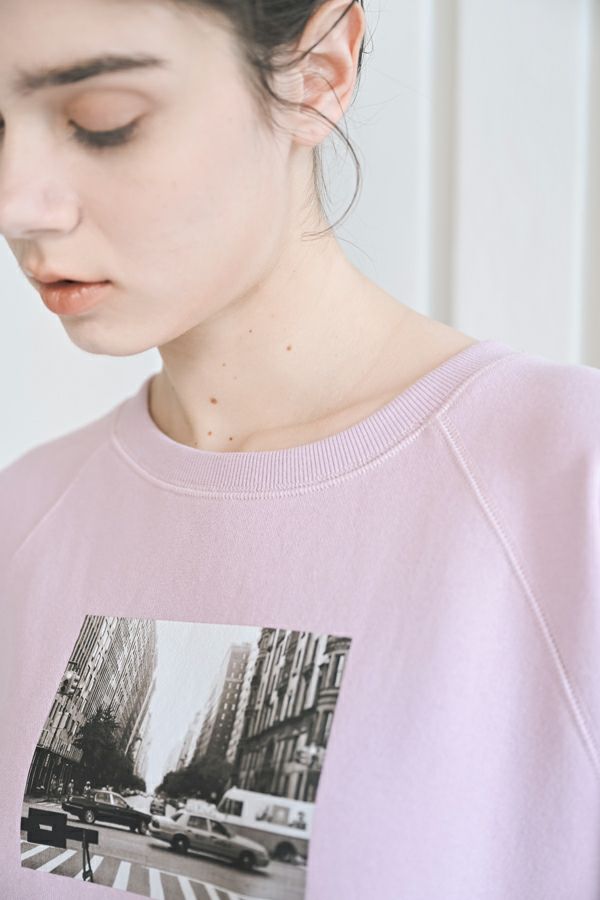 色々なシーンで活躍する、ワンランク上の大人ベーシックプルオーバー。 シンプルなTシャツのように着られ、オーバーサイジングなので 中にインナーを合わせたレイヤードスタイルも叶います。 袖口と裾は、裏パイピングで大人が着映えるキレイめな仕上げもポイント。 フロントにはモノクロフォトのプリント、後ろにはロゴプリントを施し、カジュアル要素も取り入れました。 デニムに合わせて抜け感のあるカジュアルコーデを楽しむのはもちろん、ティアードスカートに合わせたフェミニンカジュアルなスタイルもおすすめ。 Tシャツを中に入れてベストのようにレイヤードして着るのも新鮮です。
