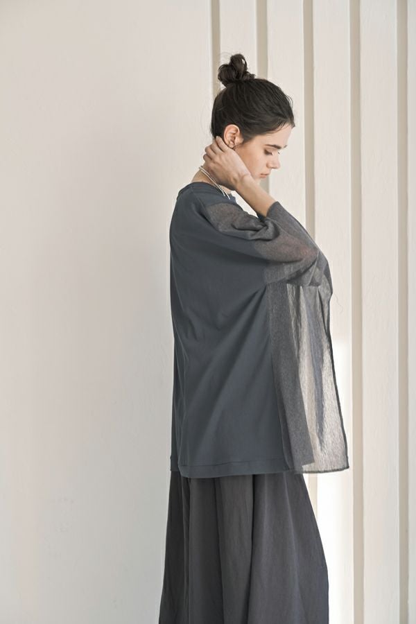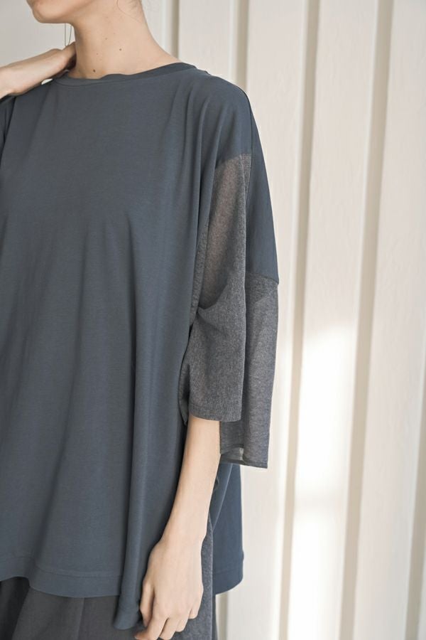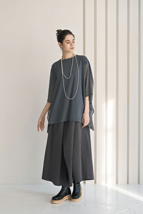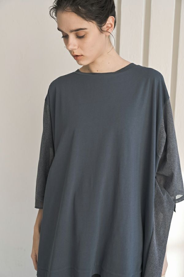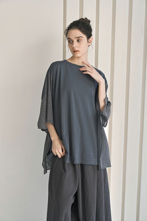 こなれ感を纏う、ゆるシルエットのビッグTEE。 身体が泳ぐゆったりサイジングで、ボディラインを拾わずリラクシーな着心地。 デザインの効いたインナーとレイヤーしたり、ゆるっと広がるシルエットを楽しんだり。もう手放せない、体型カバーを叶えながら手抜き感のない洗練デザイン。さまざまな体型の方にフィットし、こなれ感のあるスタイリングが完成します。