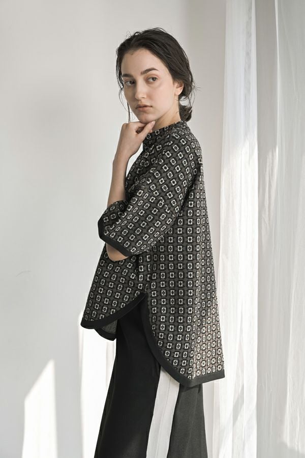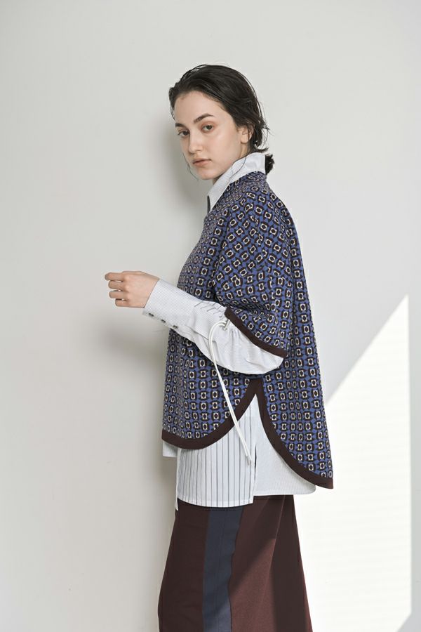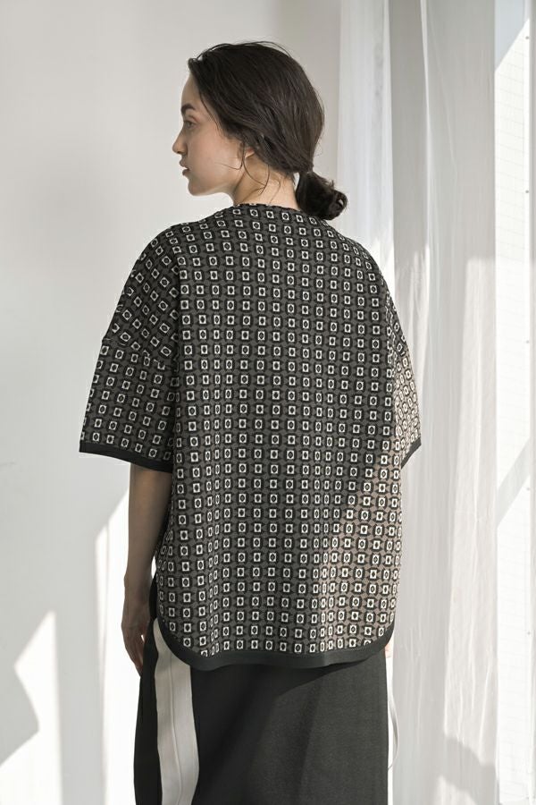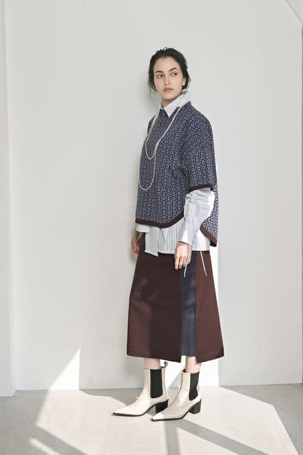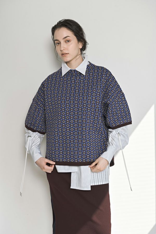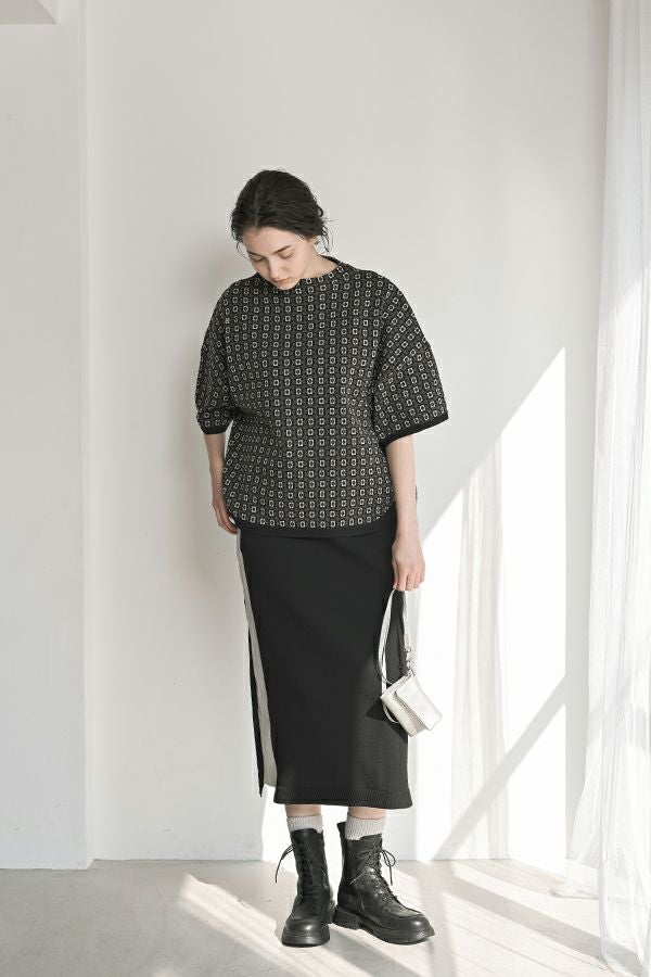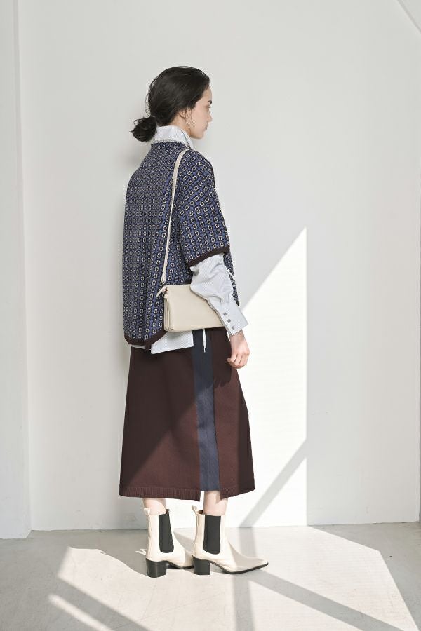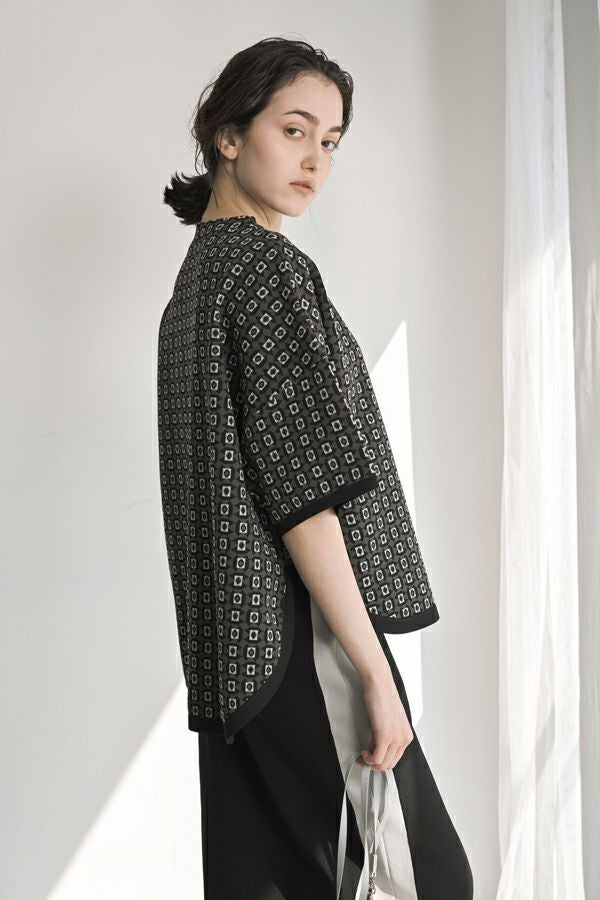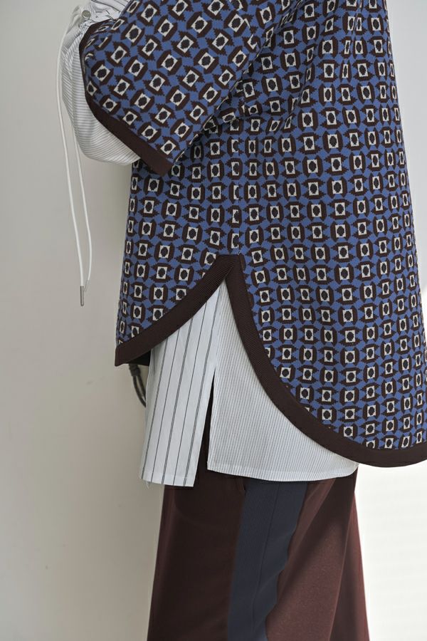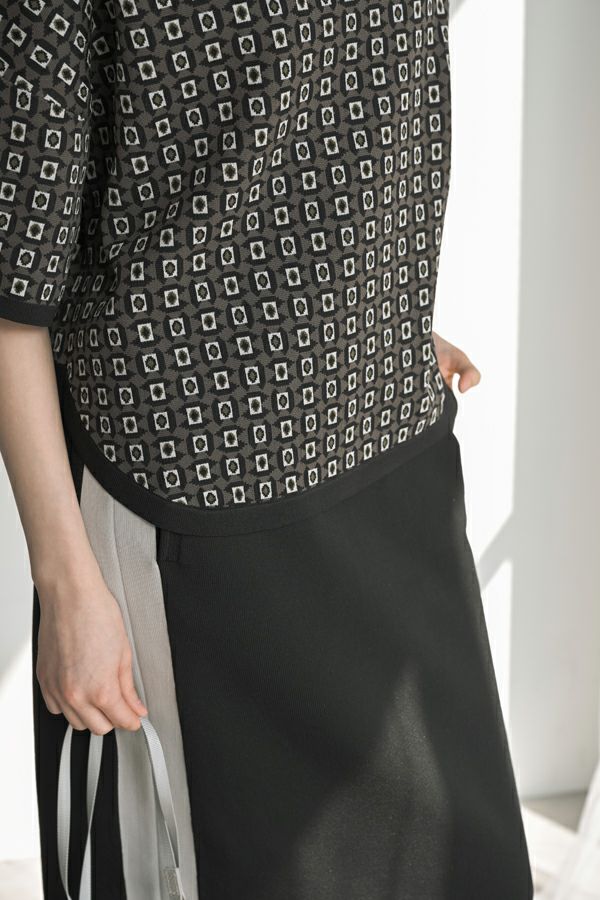 シンプルと個性の洗練デザインが目を惹く、ジオメトリー柄ニットプルオーバー。 スポンジのような弾力と柔らかなハリ感で伸縮性抜群な着心地です。オーバーサイズなボディーにラウンド裾が可愛いく、後ろ裾を長め設定にしているので気になる腰周りもカバーしてくれます。 シックなジオメトリー柄に袖と裾の無地のトリミングがグッと引き締まった、大人の遊び心あるアイテム。プルオーバーとして一枚着でも使え、肌寒くなったらベストとしてレイヤードスタイルにしたりとシーズンレスで大活躍のアイテムです。 シンプルなボトムに合わせるとスタイリッシュな着こなしに。サイドライン美スカート(25228-8371T-W)を合わせるとセットアップコーデがお楽しみいただけます。 ●手洗い可