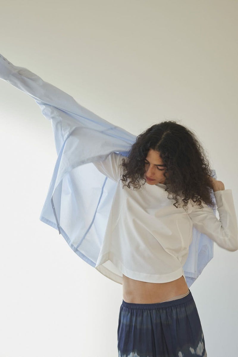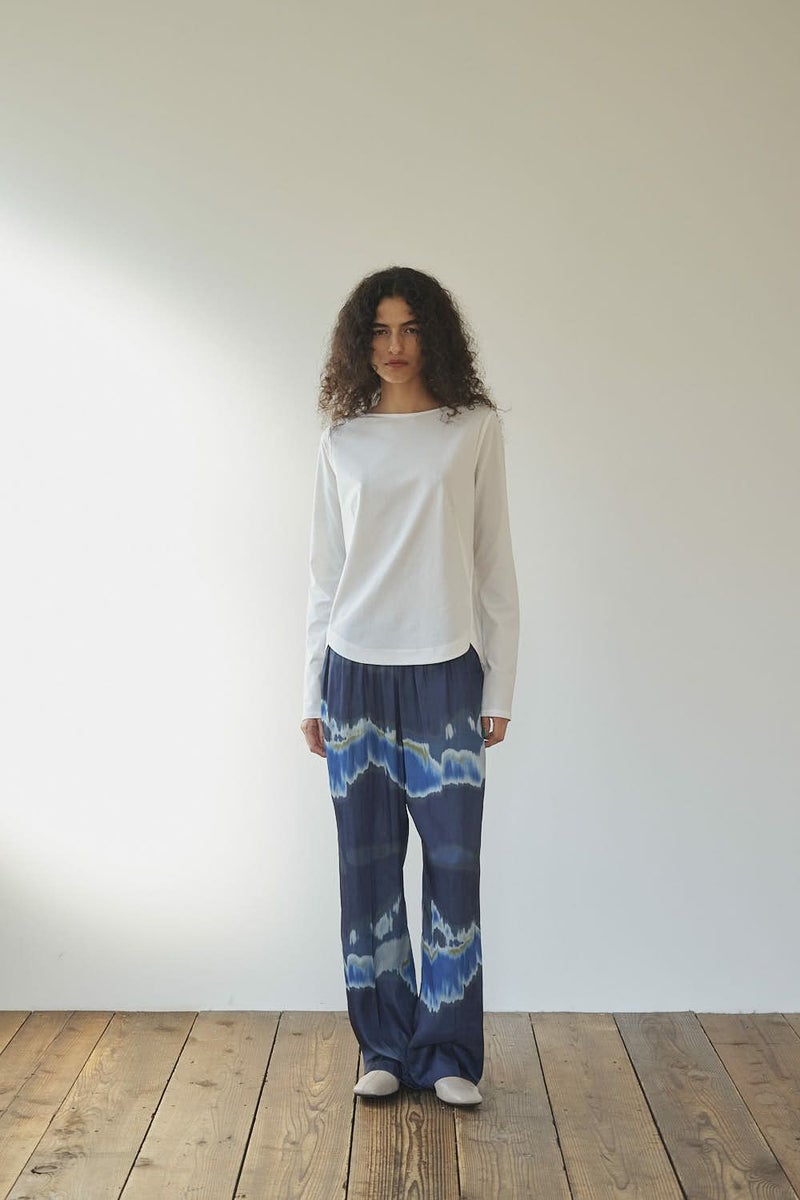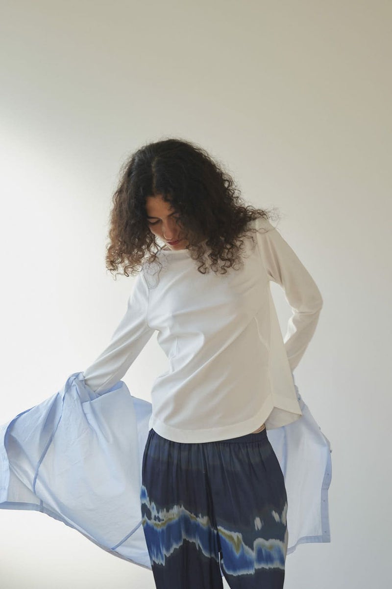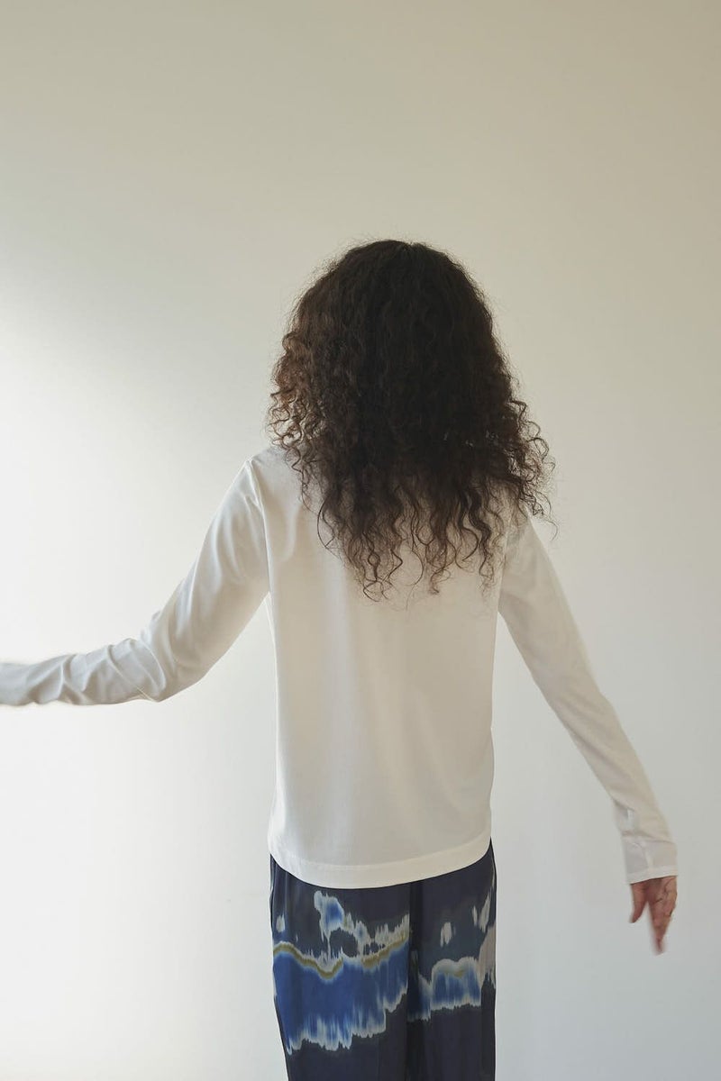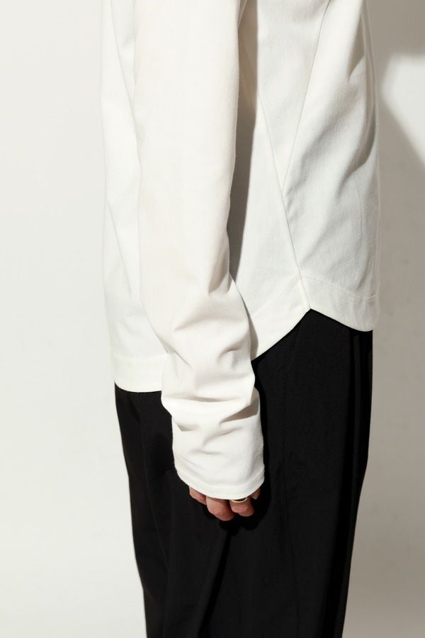 革新素材で叶える、凛と美しい大人の万能プルオーバー。 布帛のような上質な表情と、ストレスフリーなストレッチ性を融合した革新的新素材「&WARP™️」を採用。 軽やかな着心地ながら、仕立て映えする生地が、シーンを選ばず洗練された佇まいを演出します。首元を美しく惹き立てるネックラインや、パンツインしやすい裾カーブ。細部まで計算し尽くした設計で、ジャケットのインナーとしても単体としても洗練を放つ一枚です。 シワになりにくくマシンウォッシュも可能で、日常に寄り添いながらスタイルアップを叶える万能カットソーです。 ●日本製 ●2サイズ展開