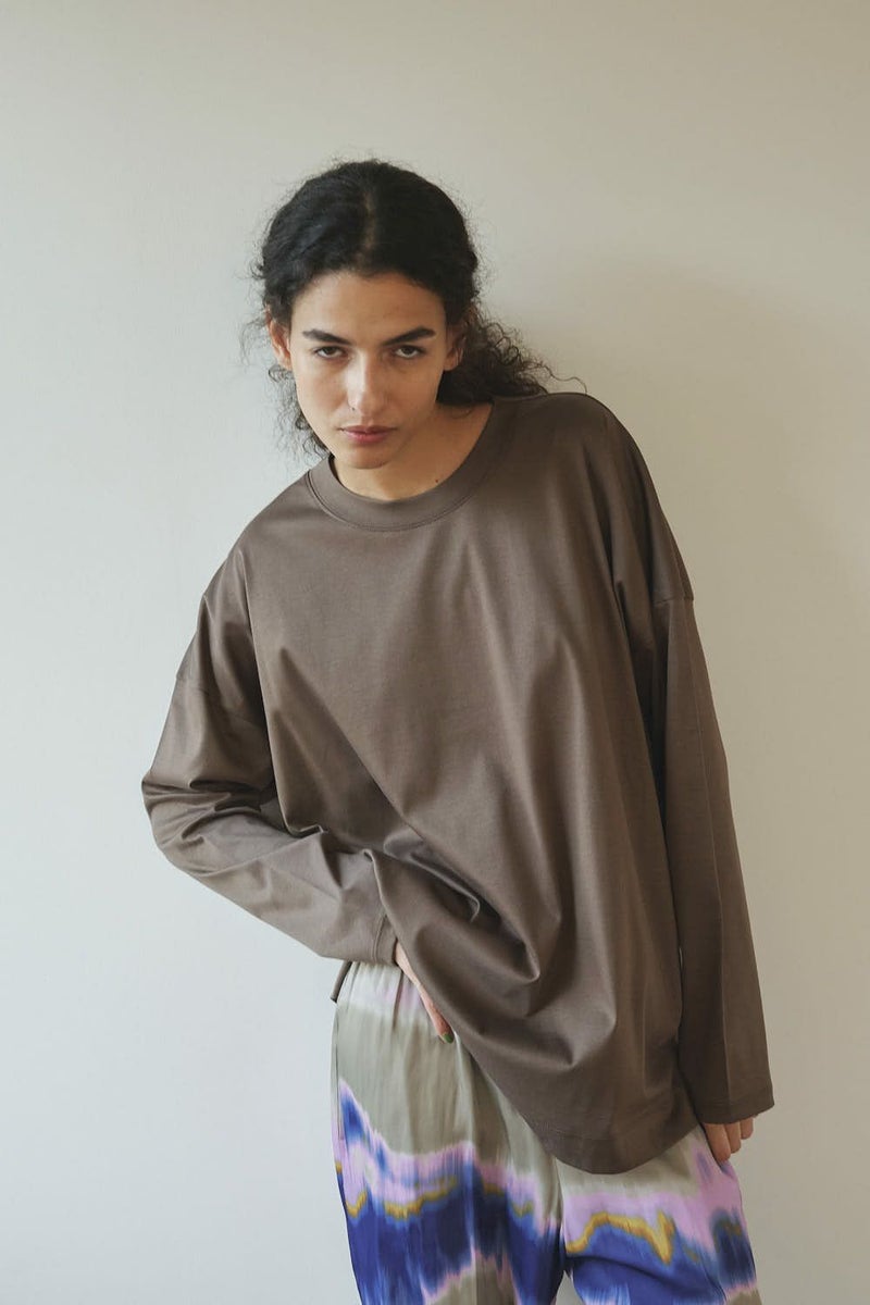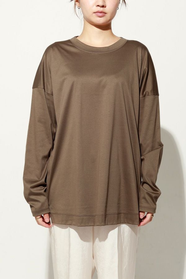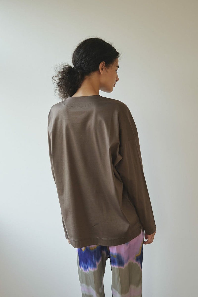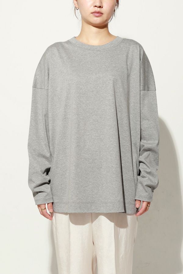 きれいが続く、大人のためのロンTEE。 定番の60/1スムースに、洗濯耐久機能をプラスした進化系ベーシックアイテム。 30回の洗濯後も風合いやふくらみ、光沢感の低下を最小限に抑え、長く美しい状態をキープ。 ネックフィットタンクトップ(25213-1357U)で好評だったすっきりとしたネックラインを取り入れ、着心地の良さとシルエットの美しさを両立。 ジャケットやカーディガンのインナーにはもちろん、一枚でも品よく着られるデザインで、毎日のコーディネートに自然に溶け込みます。 きれいが続く、頼れる大人のためのベーシックです。 ●日本製