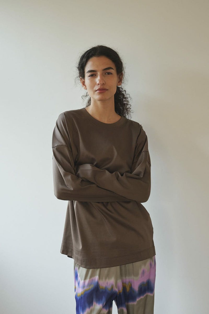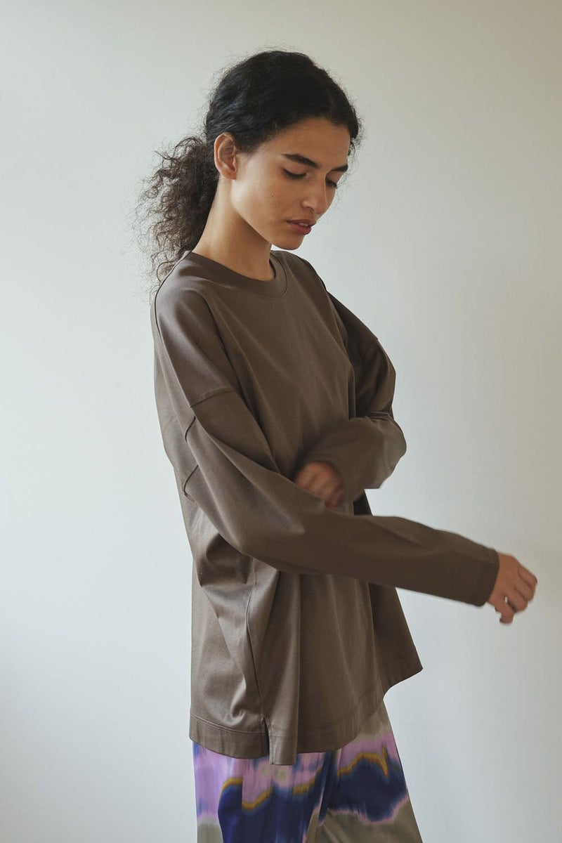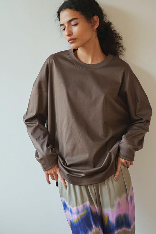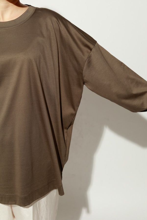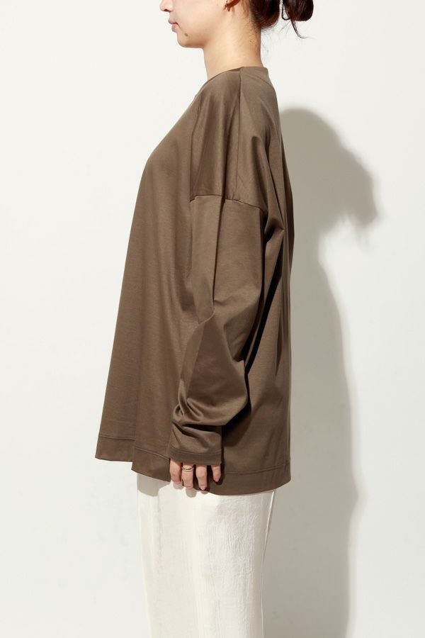 きれいが続く、大人のためのロンTEE。 定番の60/1スムースに、洗濯耐久機能をプラスした進化系ベーシックアイテム。 30回の洗濯後も風合いやふくらみ、光沢感の低下を最小限に抑え、長く美しい状態をキープ。 ネックフィットタンクトップ(25213-1357U)で好評だったすっきりとしたネックラインを取り入れ、着心地の良さとシルエットの美しさを両立。 ジャケットやカーディガンのインナーにはもちろん、一枚でも品よく着られるデザインで、毎日のコーディネートに自然に溶け込みます。 きれいが続く、頼れる大人のためのベーシックです。 ●日本製