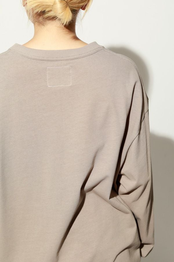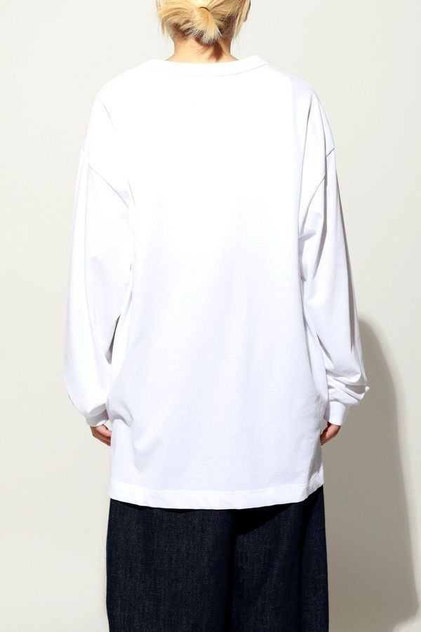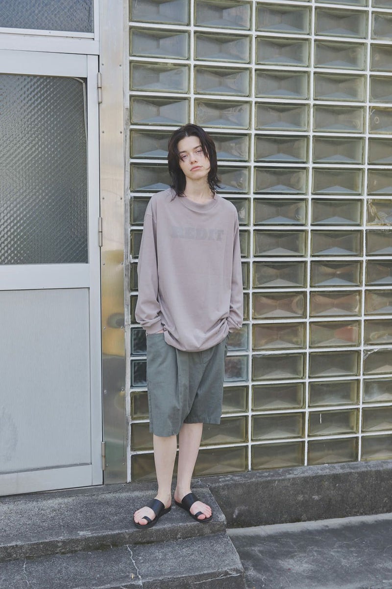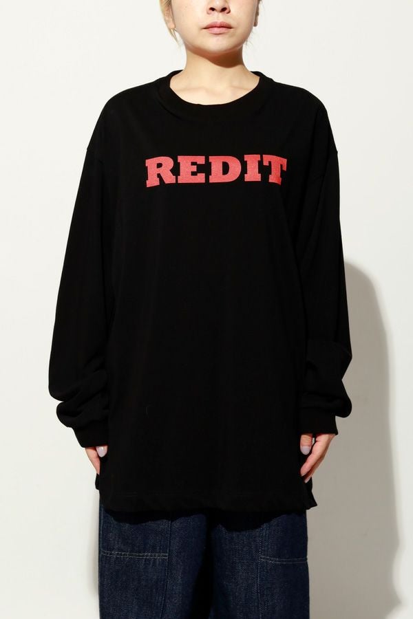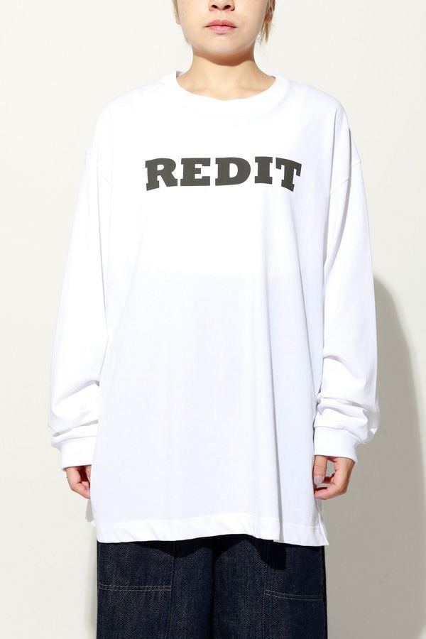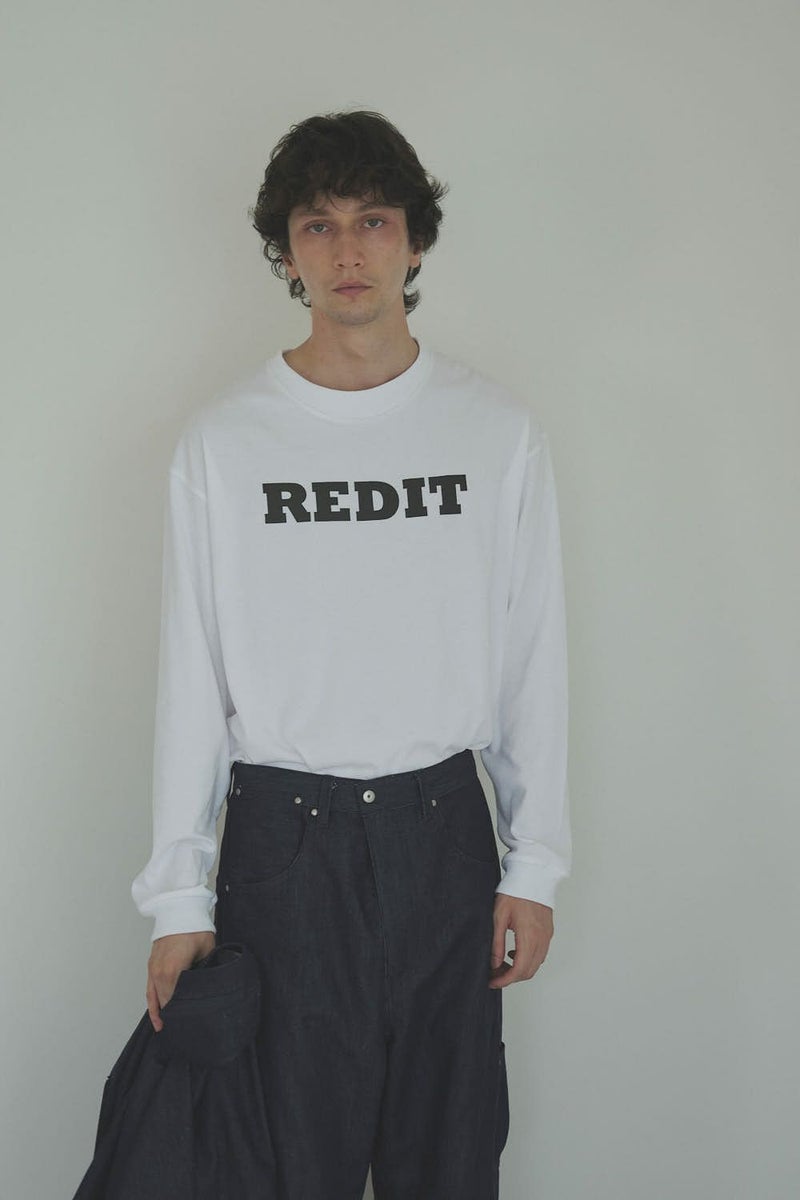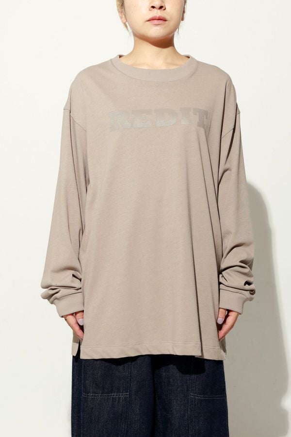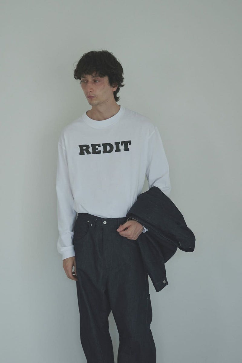 抜け感を宿す、大人の上質ロングスリーブロゴTEE。 たっぷりとしたシルエットがつくる余白が、体を包み込むようなリラックス感と構築美を両立し、メンズライクな抜け感を演出します。 袖口のリブはしっかりとした仕立てで、前後のリブ幅を変えることでさりげないデザインアクセントに。 胸元には、シーズンテーマから生まれた、再構築=「REDIT(リディット)」のロゴプリントを。 強撚糸による光沢感とシャリ感のある素材が、シンプルな中に上品な表情を纏わせてくれます。 日常のスタイルに新しいバランスをもたらす、現代的に再編集された一枚です。 ●日本製