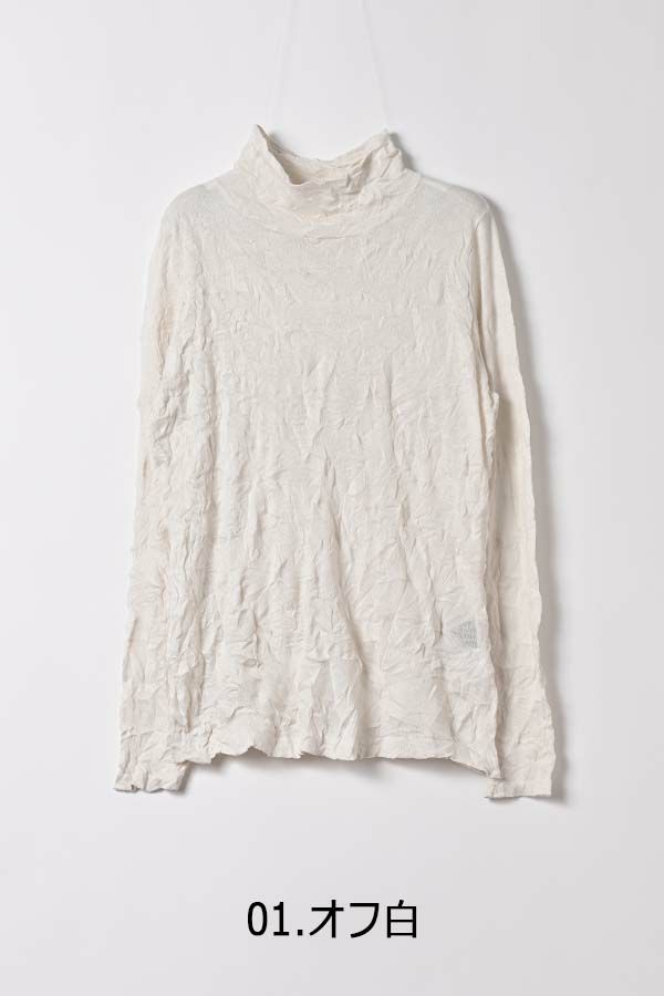 伸びも良く何度も着たい優しい肌触りのシワ加工プルオーバー 肌触りの良い綿ポリエステルの素材で、真夏以外年中着用可能な素材です。チクチクするの素材はイヤ!とおっしゃるお客様には、喜んで頂ける定番ロングランヒットの一着です。お色違いで買い揃えても後悔しません。 職人の絶妙な加減で作られているシワ加工製品は一枚一枚のシワの出方が違う希少価値の高い製品です。ランダムに入るシワによって体型が出にくい外観にもなっています。 衿の高さは、高すぎず低すぎない実用かつ、オシャレに着こなせる衿元を実現。色々なアイテムの着合わせに最適です。綿とポリエステルの混紡素材で、ソフトな肌触り。 シワ加工に必ず必要なポリエステルは、ポリステルの特徴である熱に強く一度熱で変形させると元に戻らない性質を利用。ポリステルの混率が高いほどシワ加工のセット性も高くなります。今回ポリエステルの特性を生かして肌に優しい天然繊維の綿素材との混紡素材で市場では少ないシワ加工のセーターを作りました。