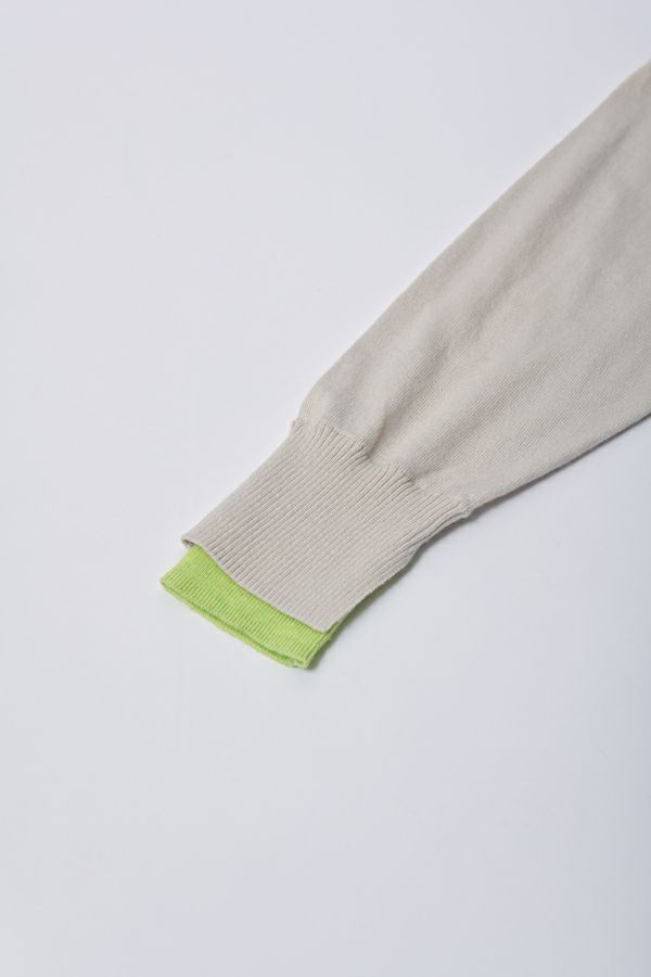 シルク混の滑らかな肌触りが着心地よい前後着用可能なカーディガン。 大きすぎず、小さすぎない絶妙なバランスの衿ぐりが女性らしい衿元をつくってくれます。袖口リブは二枚重ね。上側リブを折り返すと袖口変化が楽しめます。 カーディガンとしてはもちろん、釦を留めるとプルオーバーとしても着用でき、そして後身を前にして浅丸首プルオーバーとしても着用可能の着回しが万能カーディガンです。 シンプルなスタイリングにも、ぱっと羽織るだけで着映えする1着は、カジュアルから綺麗めまで幅広くコーディネートをお楽しみいただけます。 ●ご自宅で手洗い可能