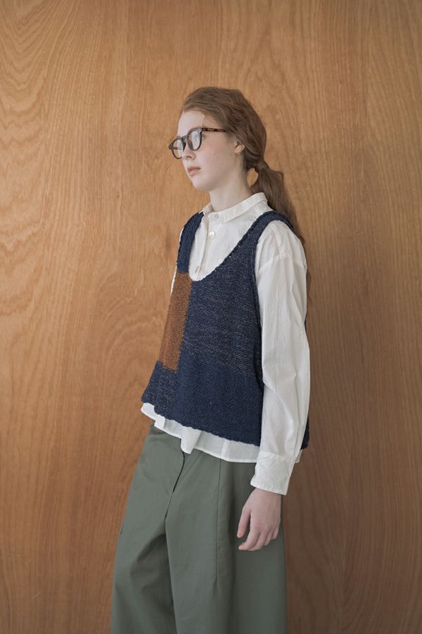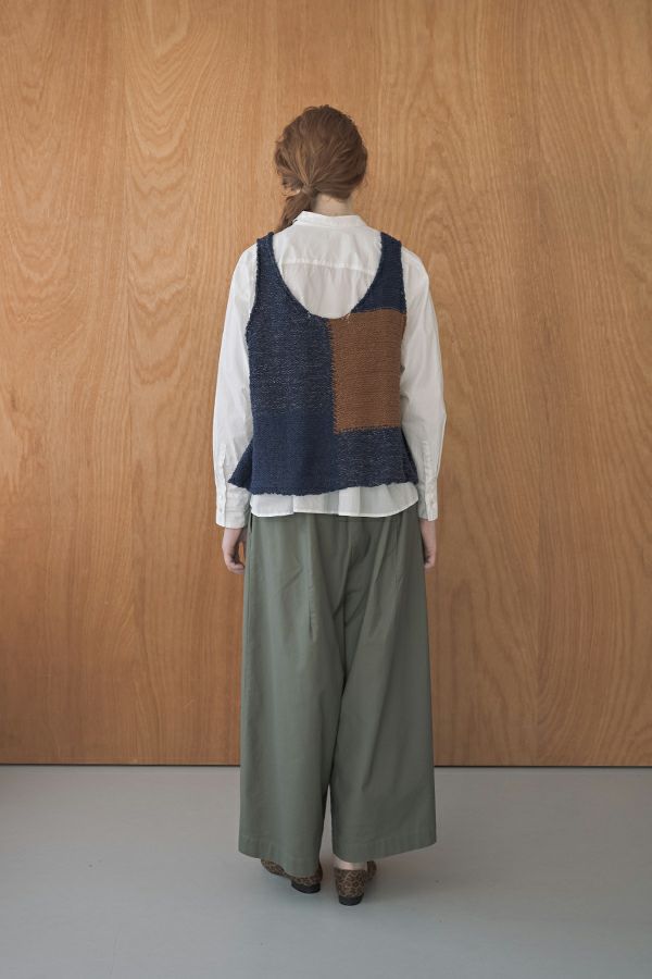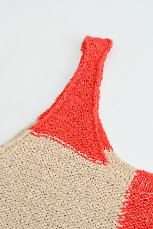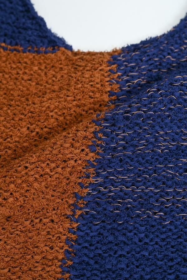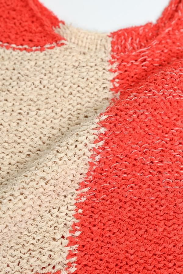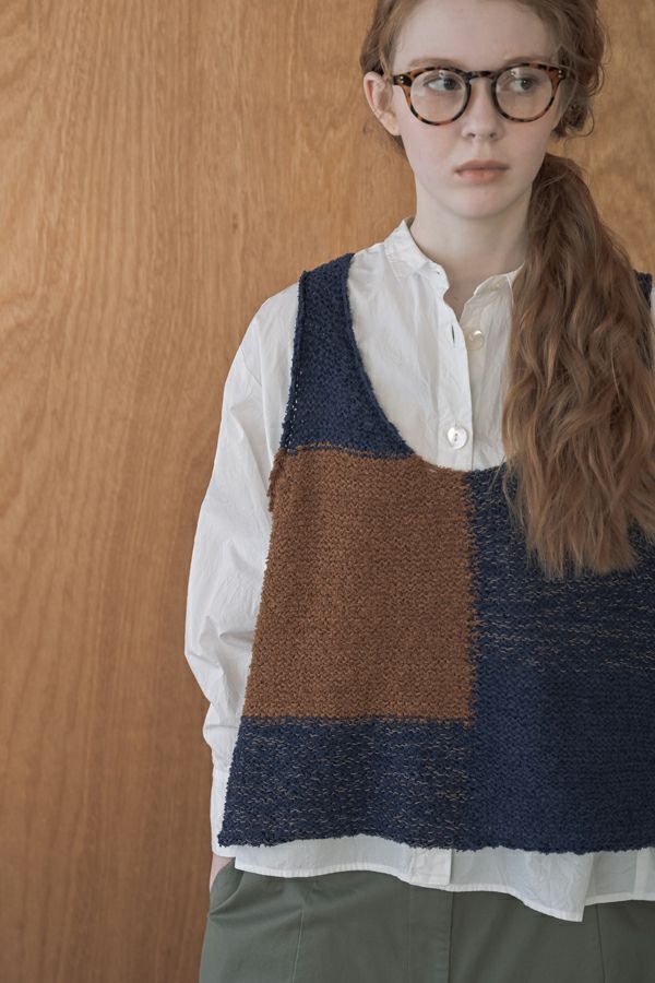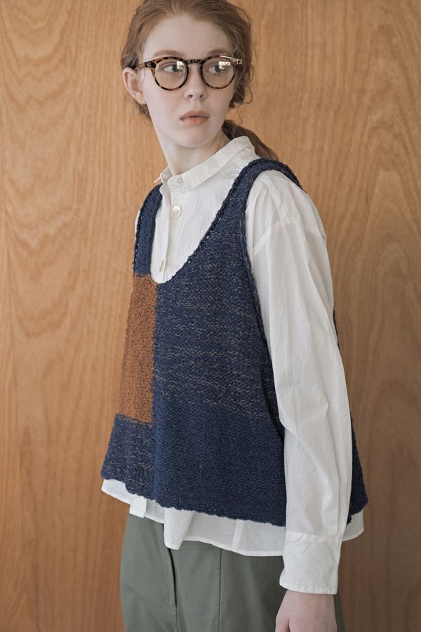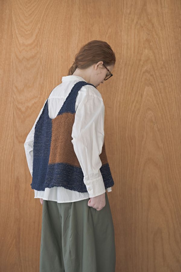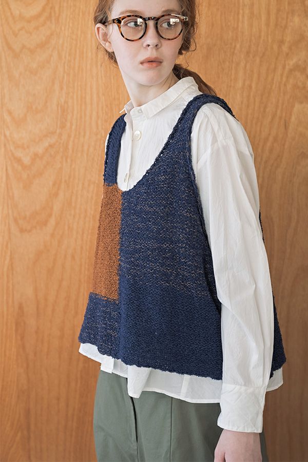 フリンジ×カラーブロックが魅せる、表情豊かなニットビスチェ。 柔らかくリボンの形状に織られた糸を更に片端だけフリンジが施された個性光るニット糸。 編んだ表面はリボン片端のフリンジが可愛く凹凸感となり体のラインに張りつかないで、Aラインシルエットでウエスト周りがゆったりしています。 色鮮やかなカラーブロックがコンパクトながらも存在感たっぷりなので、レイヤードするだけでいつものスタイリングをブラッシュアップしてくれます。 DRYな風合いのビスチェなので気温差の激しい季節の変わり目に半袖Tシャツやブラウス合わせでコーデスタイルを変えられる万能アイテムです。 ●手洗い可