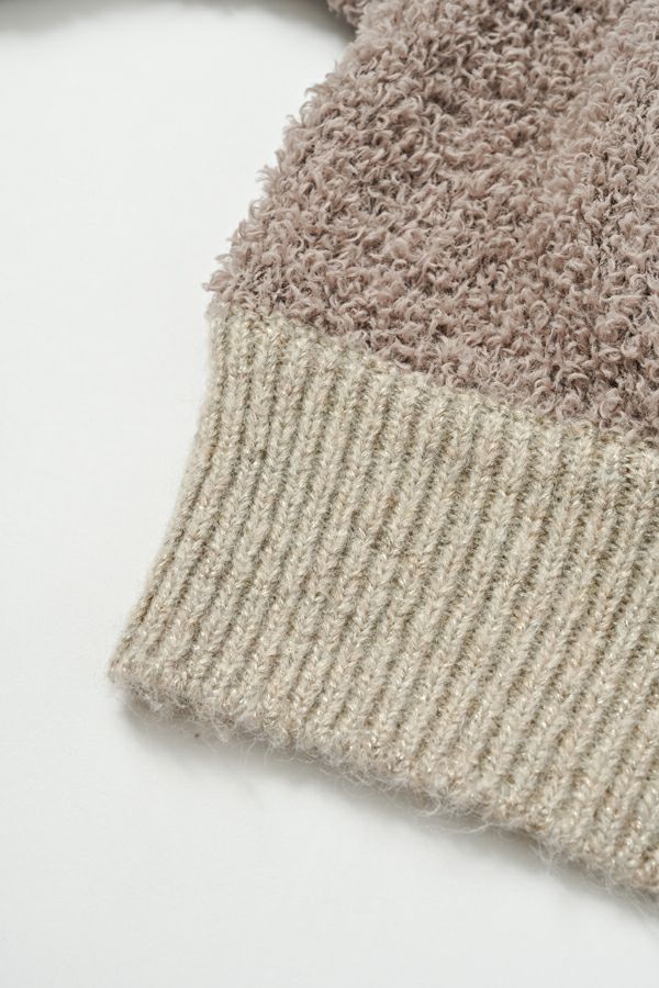 甘さとモードを両立する、大人のニット。 ふんわりとした肌ざわりと上品なぬくもりを備えた、フェザーヤーンのプルオーバー。リブ部分には別糸でラメを織り込み、主張しすぎない華やかさをひとさじ。柔らかな素材とほどよいボリューム感が今の気分にフィットしながら、ルーズすぎない洗練されたバランスに仕上げました。 素材の持つ質感を活かすなら、合わせるボトムは光沢感のあるスカートやメタリックなパンツでコントラストを効かせて。足元はヒールで縦ラインを引き締め、アクセサリーは繊細なものを一点だけ。甘さに頼らず、奥行きのある大人のスタイルが完成します。 “やさしさ”も“強さ”も内包した、今の気分に寄り添うニットです。 ●フェザーヤーンとは 羽毛のようにふわふわとした長い毛足が特徴の糸。