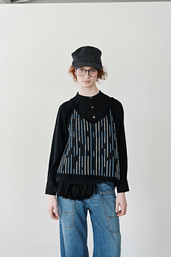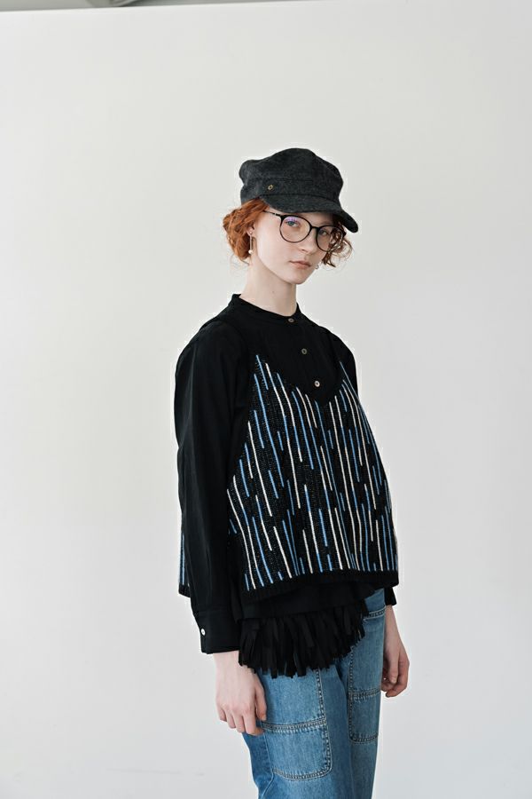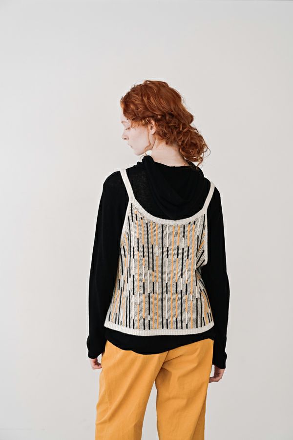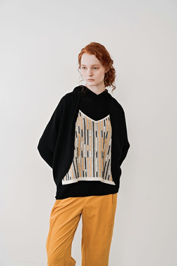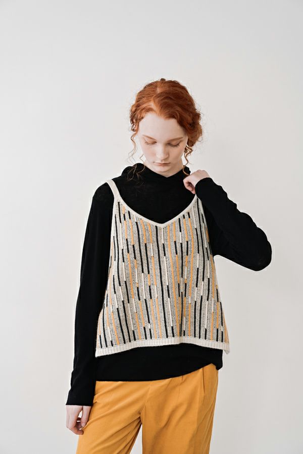重ねるだけで、抜け感と彩りを。大人のための2WAYニットビスチェ。 絶妙な色合いのカラフルな編み柄が大人可愛く、縦ラインがすっきりとした印象に導きます。 前はVネック、後ろはラウンドシルエットと、前後で異なるネックデザインの2WAY仕様。その日の気分やインナーに合わせてアレンジが楽しめる、嬉しいデザインです。裾の両サイドに入れたスリットがウエスト周りに程よいゆとりを持たせ、重ね着もスムーズに。 ニットビスチェは伸縮性があるので、着心地や着脱も楽ちん。秋口にはシャツやカットソー、冷え込む冬にはタートルとのレイヤードで、スタイリングのアクセントにも活躍。シンプルなスタイリングに、さりげなくトレンド感と季節感を添えてくれる万能アイテムです。