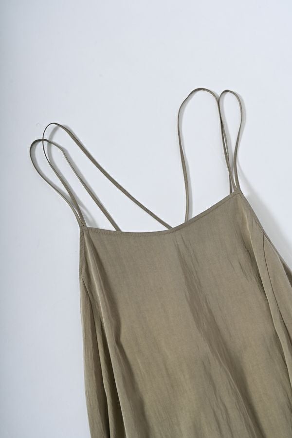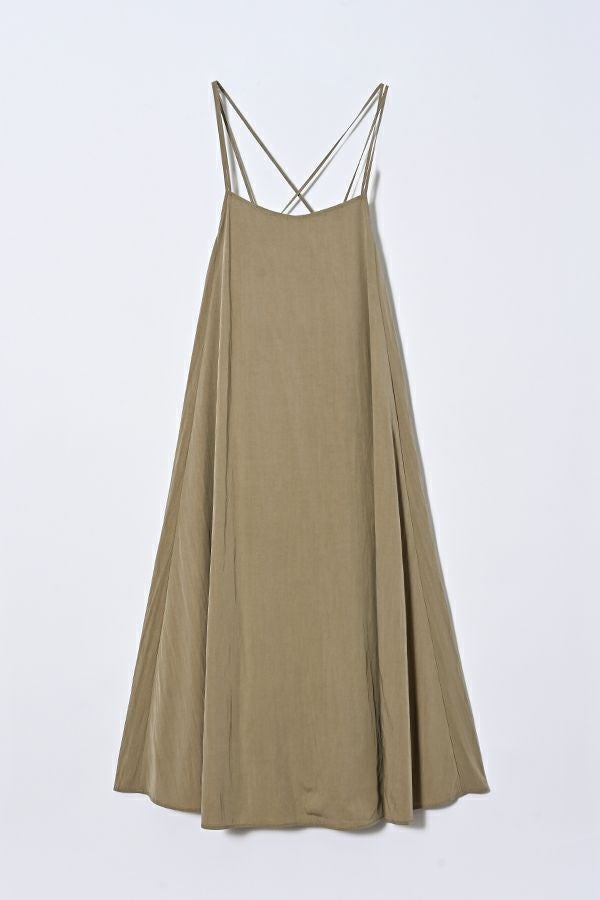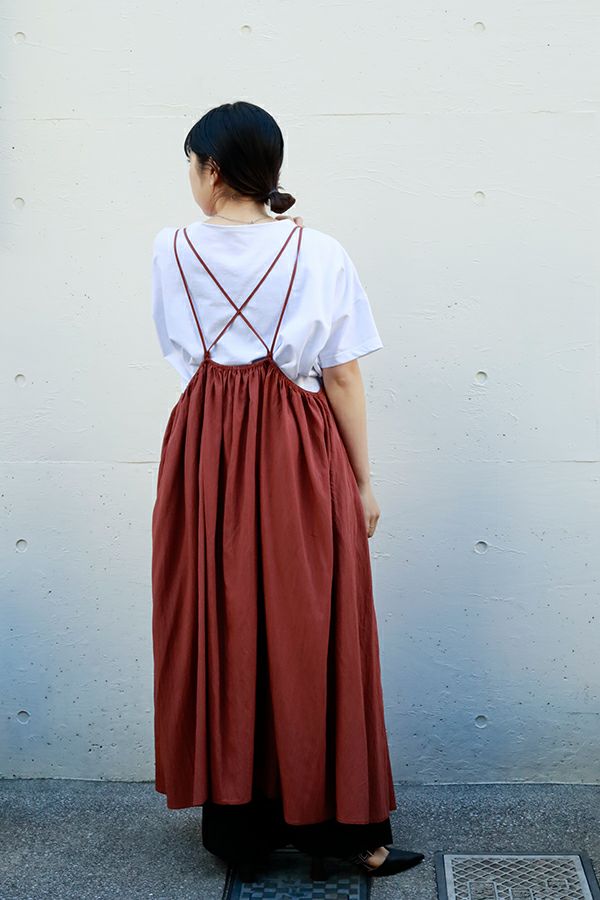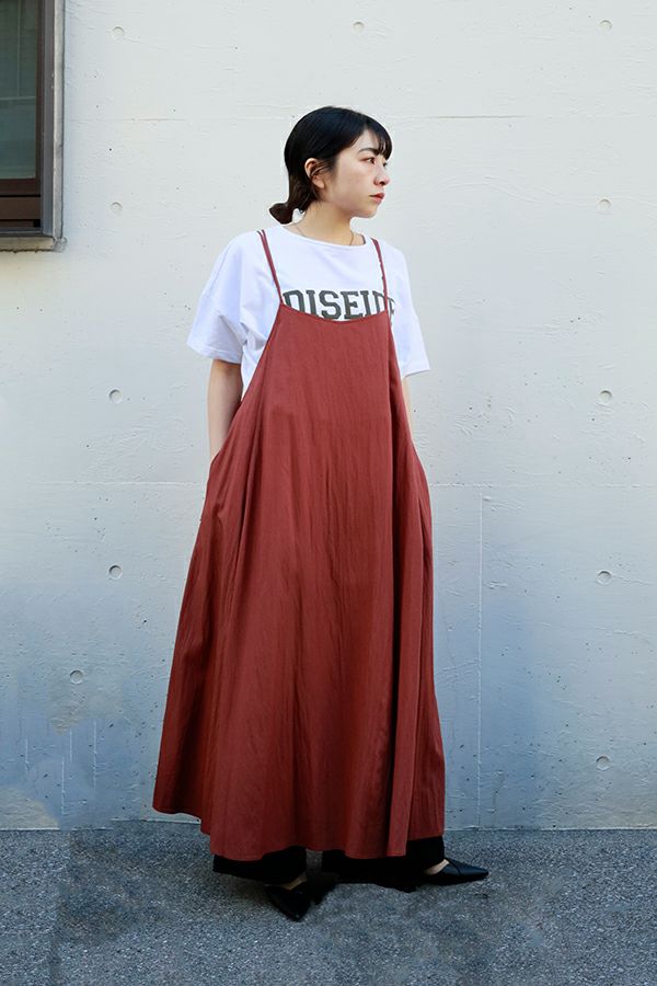 ※※ 追加生産決定!!ブラック8月中旬ごろ入荷予定!※※ 秋品番に変わります、キャミワンピース(商品番号 25213-2351E) 検索窓にて「キャミソールワンピース」もしくは下「2351」を入力いただきますとスムーズにご覧いただけます。 バックシャンもお洒落に魅せる、大人っぽさを高めるキャミワンピース。 マットな光沢感と自然なシボ感で表情のある素材が印象的。春から秋まで着れ、3シーズン対応可能です。 蹴回し(裾回り寸)をたっぷりとった贅沢なフレアシルエットで、体のラインを拾わずストレスフリーな着心地です。華奢なストラップでワンピースの丈が2段階調節出来る仕様になっているのも嬉しいポイント。後ろ姿も抜かりなく、女性らしい印象を醸し出してくれます。 インナーにTシャツを重ねたり、上にGジャンやスプリングジャケットを羽織ったりと、着回しも様々楽しめます。春はロンTEE、夏は半袖プルオーバー、秋はハイネックプルオーバーと、季節によって旬のレイヤードを楽しんで下さい。 ●同型でプリントタイプ(25173-2352E)も有