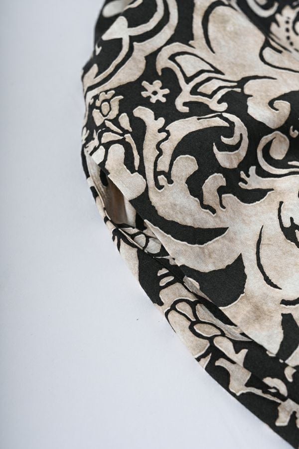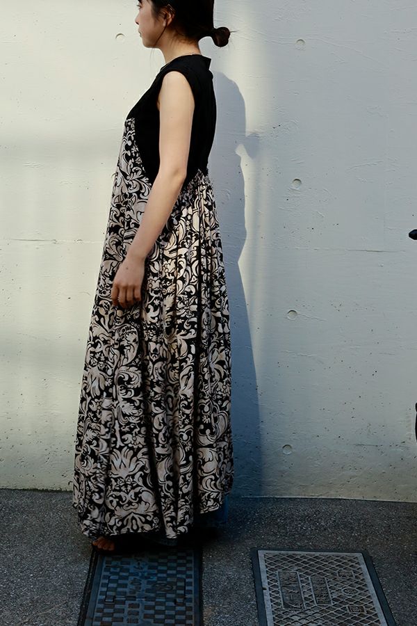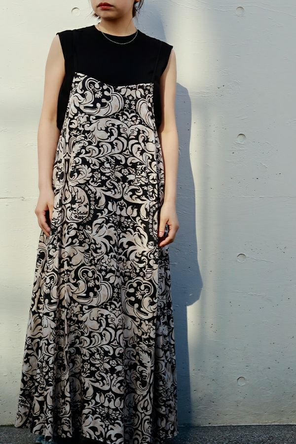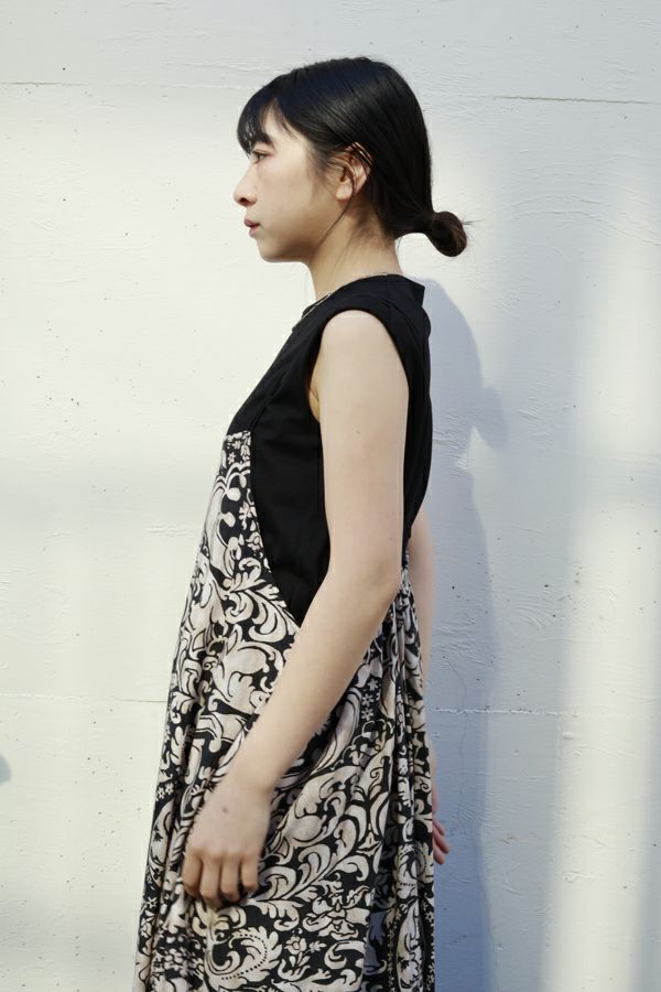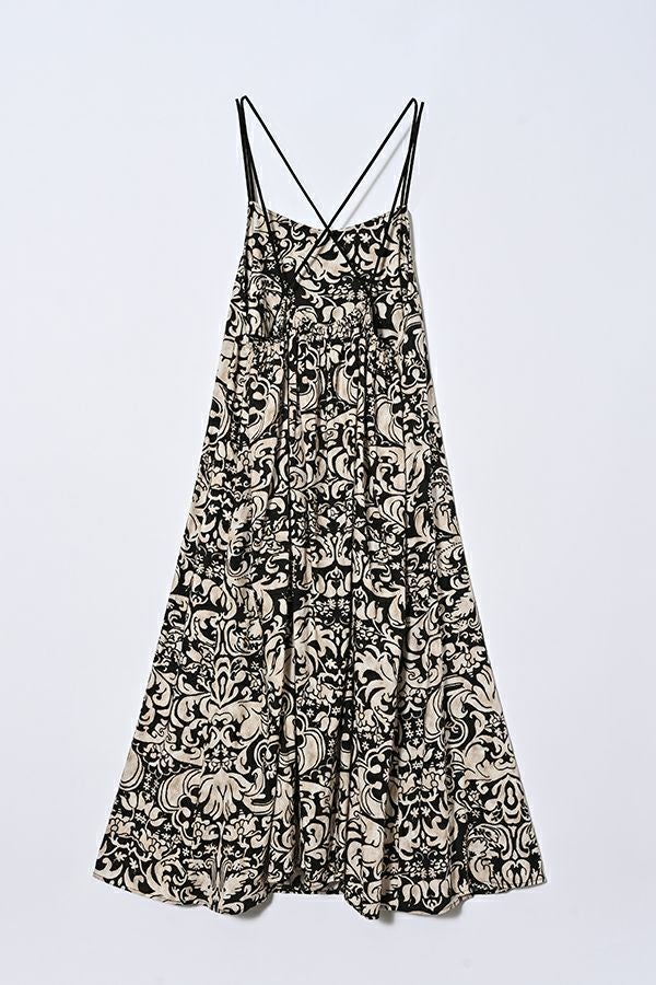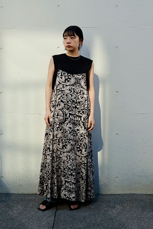 バックシャンもお洒落に魅せる、エスニック柄キャミワンピース。 マットな光沢感と滑らな手触り、大人っぽさ高めるプリントが印象的。 蹴回し(裾回り寸)をたっぷりとった贅沢なフレアシルエットで、体のラインを拾わずストレスフリーな着心地です。華奢なストラップでワンピースの丈が2段階調節出来る仕様になっているのも嬉しいポイント。後ろ姿も抜かりなく、女性らしい印象を醸し出してくれます。 インナーにTシャツを重ねたり、上にGジャンやスプリングジャケットを羽織ったりと、着回しも様々楽しめます。チューブトップやキャミソールとレイヤードした抜け感のある肌見せスタイルから、Tシャツやロングスリーブとのレイヤードで、デイリーにも取り入れられるスタイル等、合わせるアイテムよって様々な着こなしが楽しめる1枚です。 ●同型で無地タイプ(25173-2351E)も有