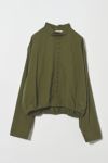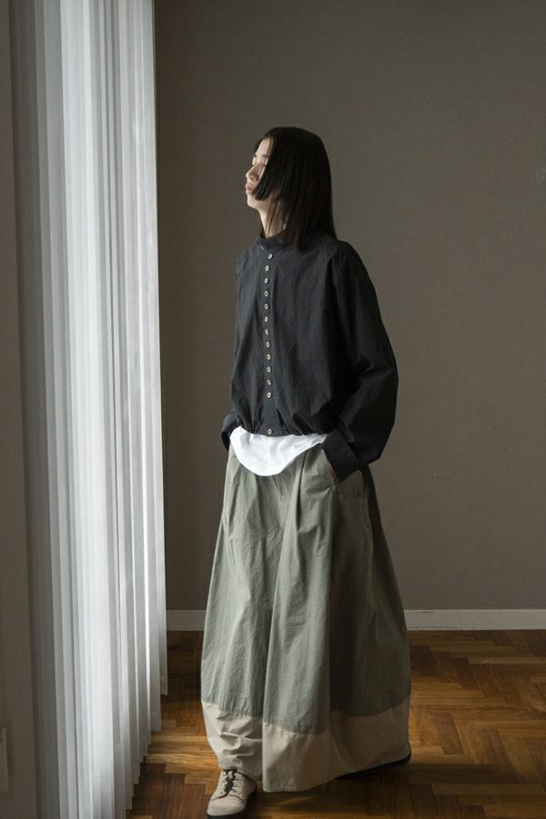 軽やかにクラシカル、シャツ感覚で羽織れるライトブルゾン。 シャツのような軽やかさと、ブルゾンの機能性を合わせ持った一枚。 ブラウジングした裾が特徴のショート丈デザインは、秋口のレイヤードスタイルにもぴったりです。 表情のあるシャツ地を使用し、ナチュラルなシワ感や風合いが程よく抜け感を演出。コンパクトなスタンドカラーは首元から少し離れる設計で、顔周りをすっきり見せてくれます。 スタイリング次第で、衿を倒してシャツライクに着こなすのもおすすめ。太めの袖口はロールアップしやすいだけでなく、ループボタンを留めることでクラシックなタックデザインにもアレンジ可能。 素材には、きめ細かなリップストップを使用。軽くて通気性がありながら、しっかりと強度のある生地は、メッシュの裏地とともに快適な着心地を叶えます。見た目にも上品な質感があり、アウトドア感を抑えたモード寄りの表情に。 袖口や衿先に配された小さなループや、シャツのように連なるフロントボタン、ブランドロゴ入りの吊りテープなど、細部にまでこだわったクラシカルなディテールも魅力です。軽やかに羽織れて、スタイルの格をさりげなく引き上げる一着です。